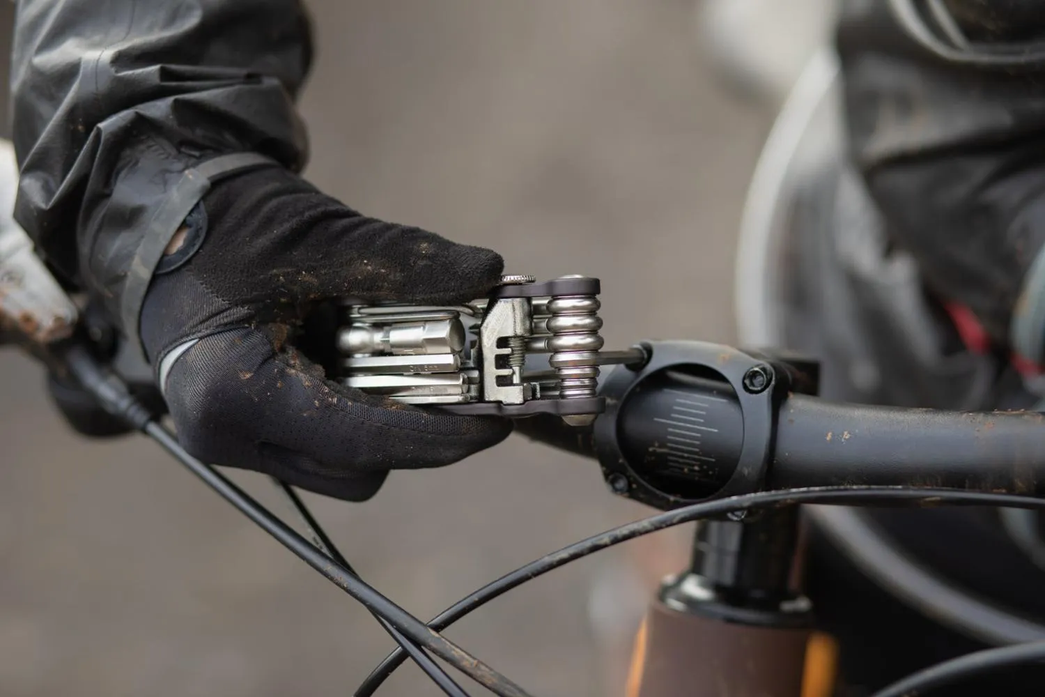 Также включает левер для шин, инструмент для цепей и открывалку для бутылок