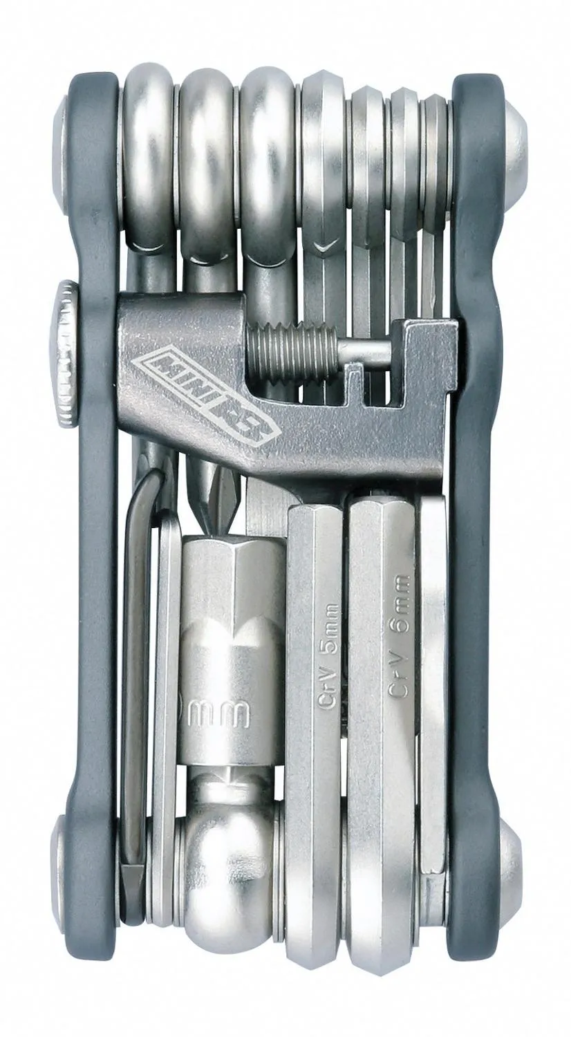 Включает 2, 2,5, 3, 4, 5, 6, 8 и 10 шестигранных ключей, биту Torx T25 для дисковых тормозов, а также крестовую и плоскую отвертки
