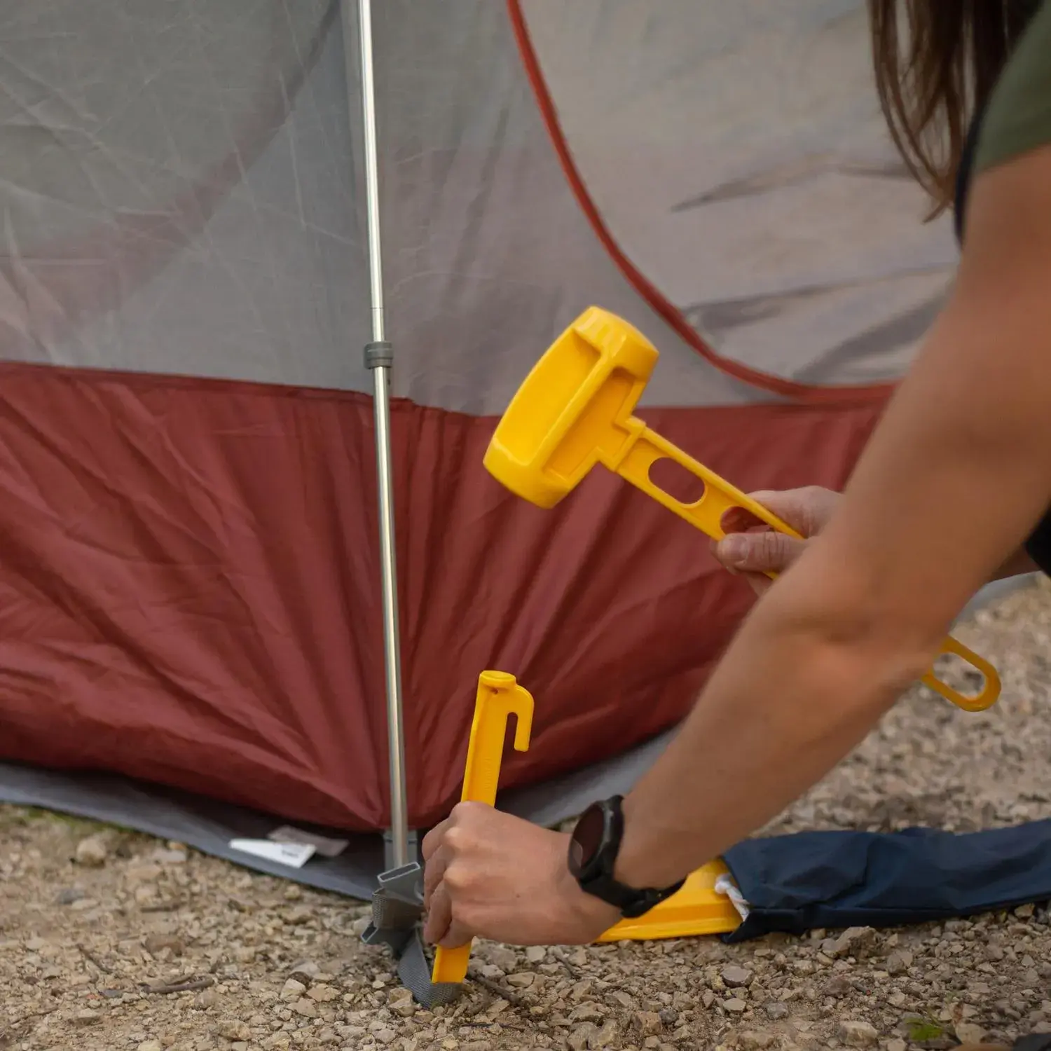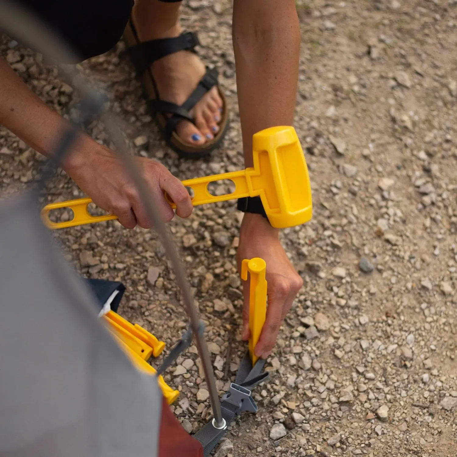 Убивайте или извлекайте пластиковые или металлические колышки с помощью этого комбинированного молотка/извлекательного инструмента.