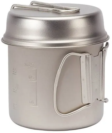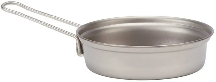 Набор включает в себя титановую кастрюлю объемом 30 унций, небольшую титановую сковороду и нейлоновый мешок для хранения; сковорода также служит крышкой для кастрюли. Титан не только очень легкий, он не оставляет металлического запаха или вкуса и не ржавеет. У кастрюли и сковороды есть ручки, которые складываются плоско для компактного хранения. Закругленные края дна легко чистятся и улучшают эффективность нагрева. Набор достаточно маленький, чтобы в него помещалась горелка Snow Peak Giga Power и газовый баллон объемом 250 г, оба продаются отдельно. Кастрюля имеет размеры 4,75 x 4,25 дюйма и весит 3,7 унции; сковорода имеет размеры 5 x 1,625 дюйма и весит 2 унции; мешок для хранения весит 0,3 унции.