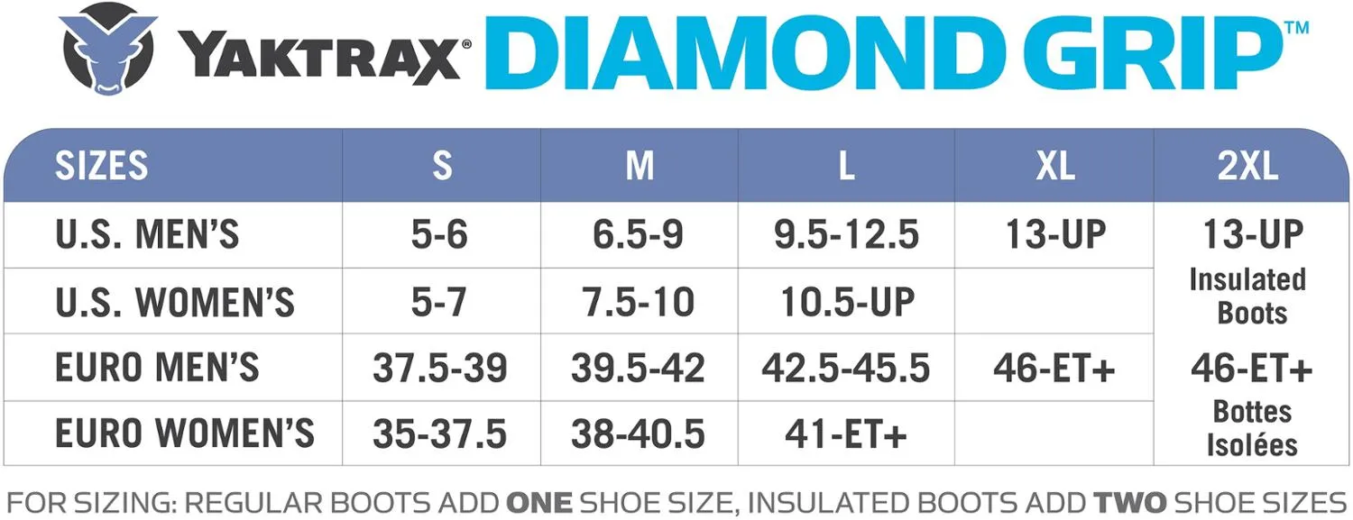 Система сцепления ICEtrekkers Diamond Grip легко крепится к различной обуви для улучшенного и агрессивного сцепления в зимних выездах, походах и при уборке снега.