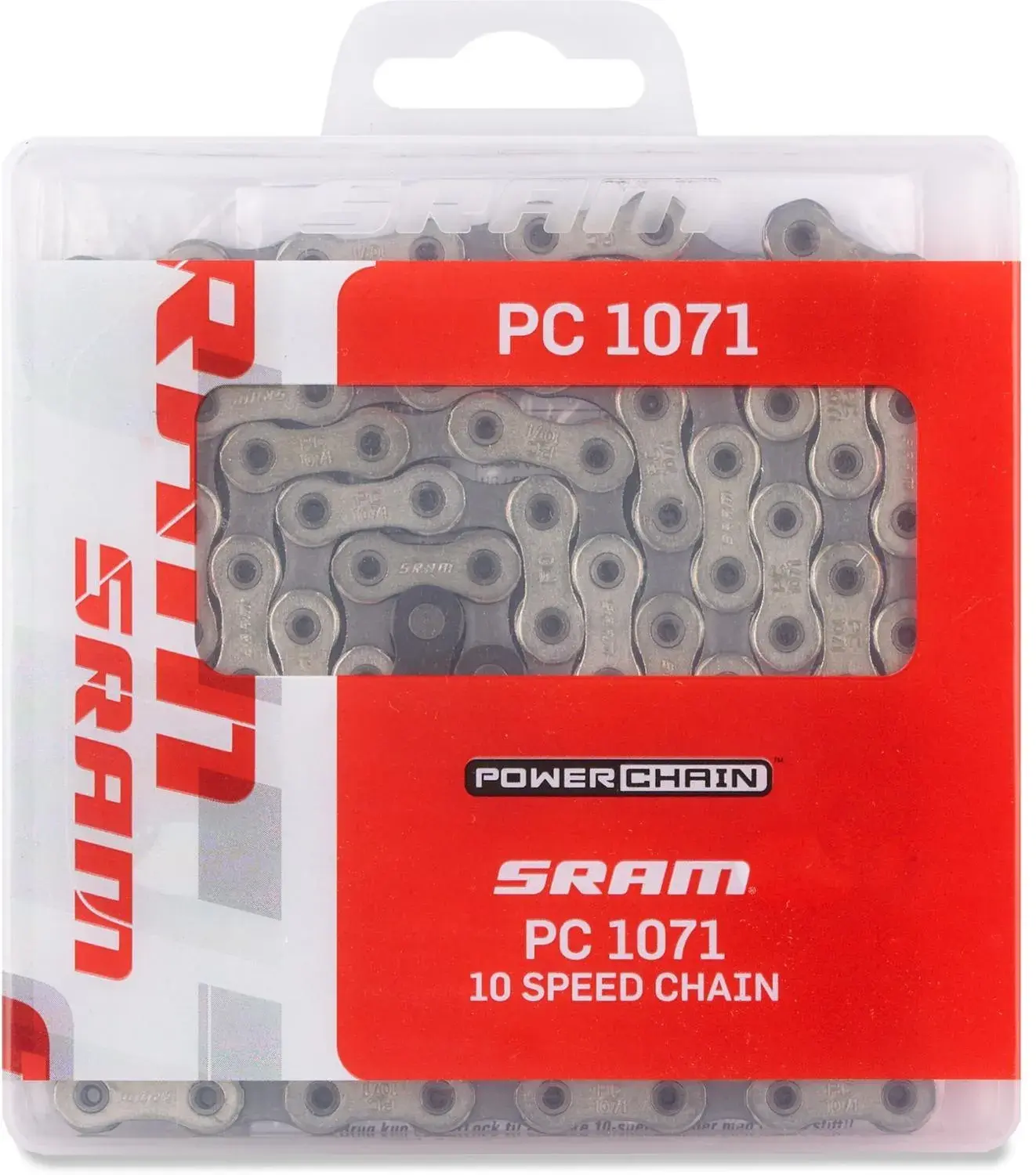 Цепь SRAM PC1071 на 10 скоростей использует конструкцию HollowPin, обеспечивая безупречную производительность, прочность и легкий вес.