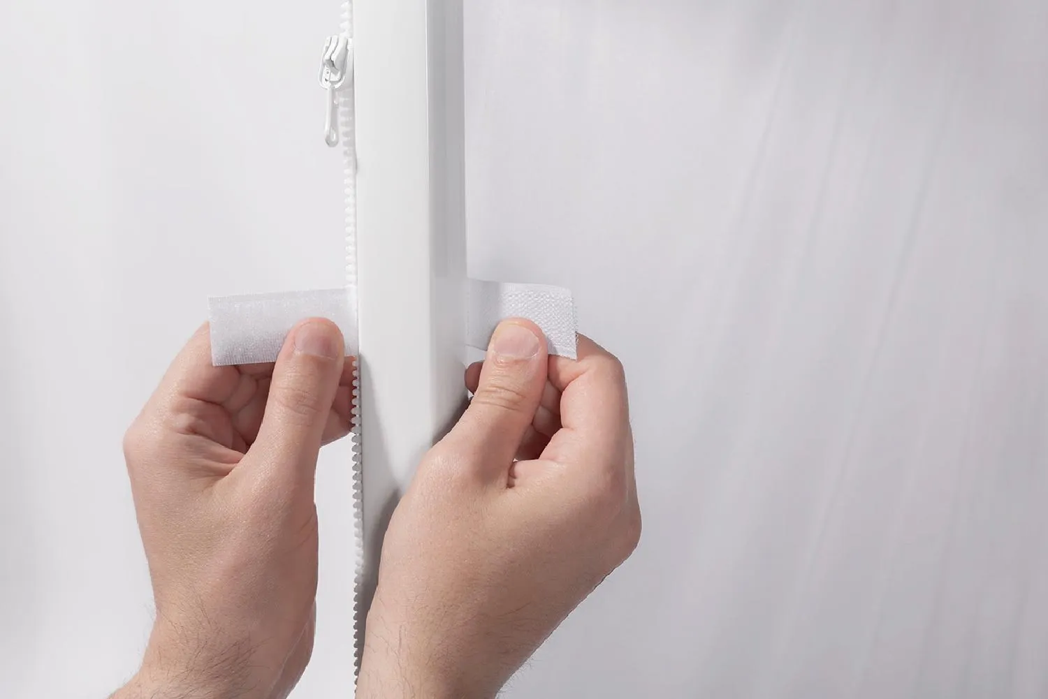 Молнии с обеих сторон боковой стены позволяют соединять стены вместе для полного закрытия навеса.