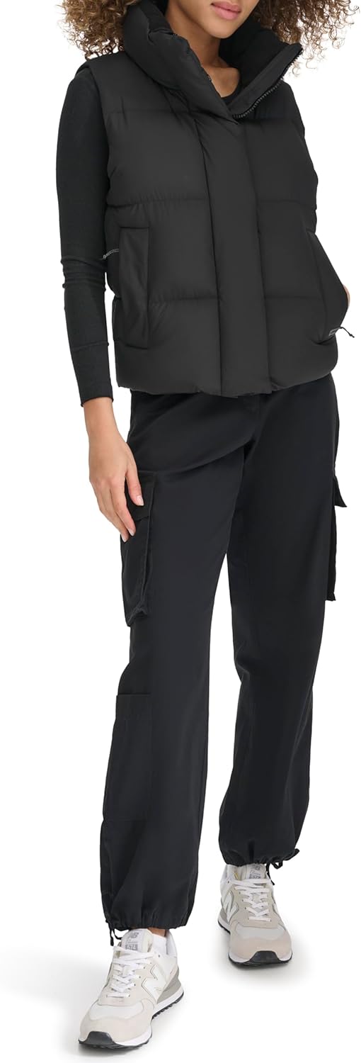 Этот стеганый жилет-пуховик имеет стеганую внешнюю оболочку с утеплителем из искусственного пуха. Воротник-стойка с флисовой подкладкой обеспечивает комфортную и уютную посадку, сохраняя тепло.