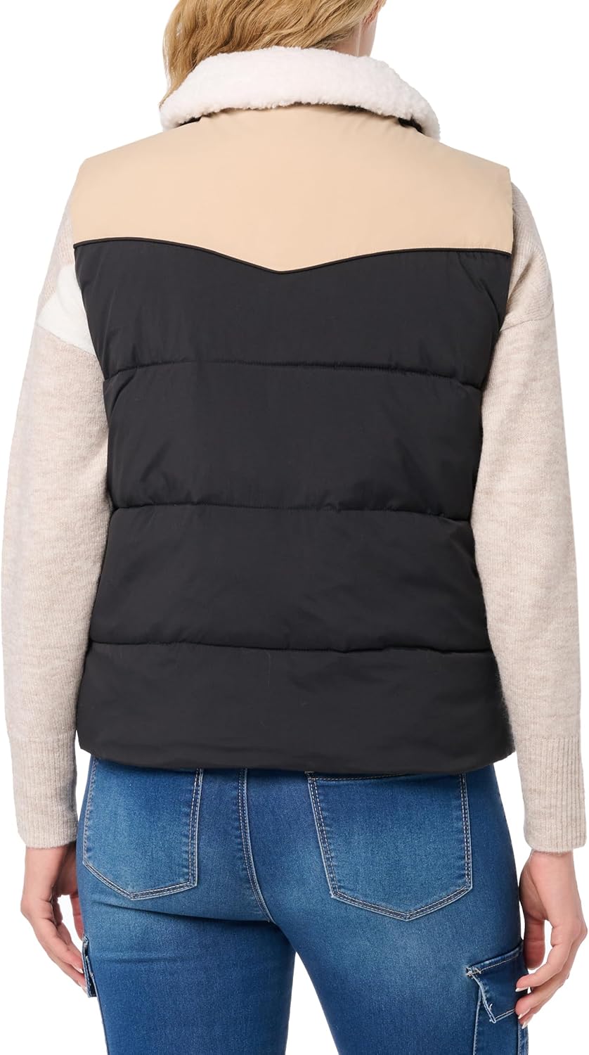 СТИЛЬНЫЕ ОСОБЕННОСТИ: Контрастная кокетка с деталями в стиле вестерн, отложной воротник из шерпы. ТЕПЛОУВЛАЖНЯЮЩИЕ СВОЙСТВА: Утеплитель из искусственного пуха, внутренняя подкладка. ФУНКЦИОНАЛЬНОСТЬ: Застежка-молния по центру спереди, два нижних кармана для рук.