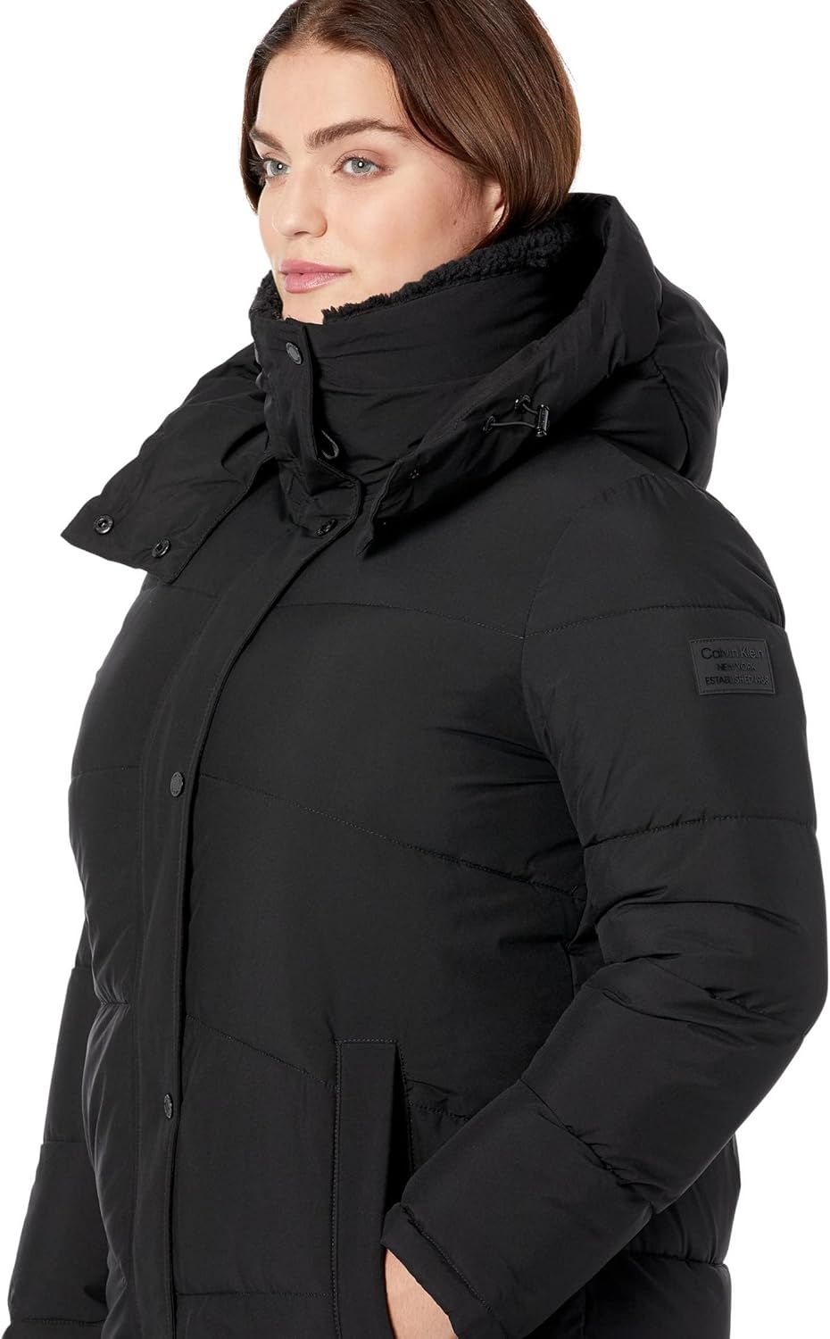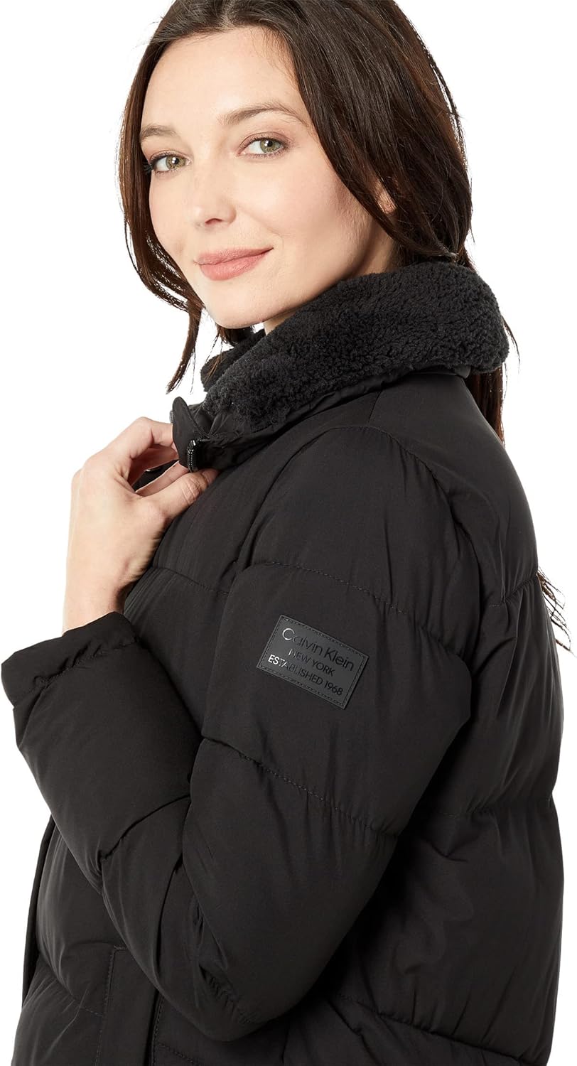 Оставайтесь в тепле и стильно в эту прохладную погоду в эластичном пуховике Calvin Klein A-Line. Съёмный капюшон на кнопках и фиксаторах. Воротник из искусственного меха. Застёжка на молнию спереди с ветрозащитной планкой на кнопках. Длинные рукава. Карманы для рук спереди. А-образный силуэт. 100% полиэстер; подкладка: 100% полиэстер; наполнитель: 100% полиэстер Sorona. Машинная стирка, сушка в стиральной машине.