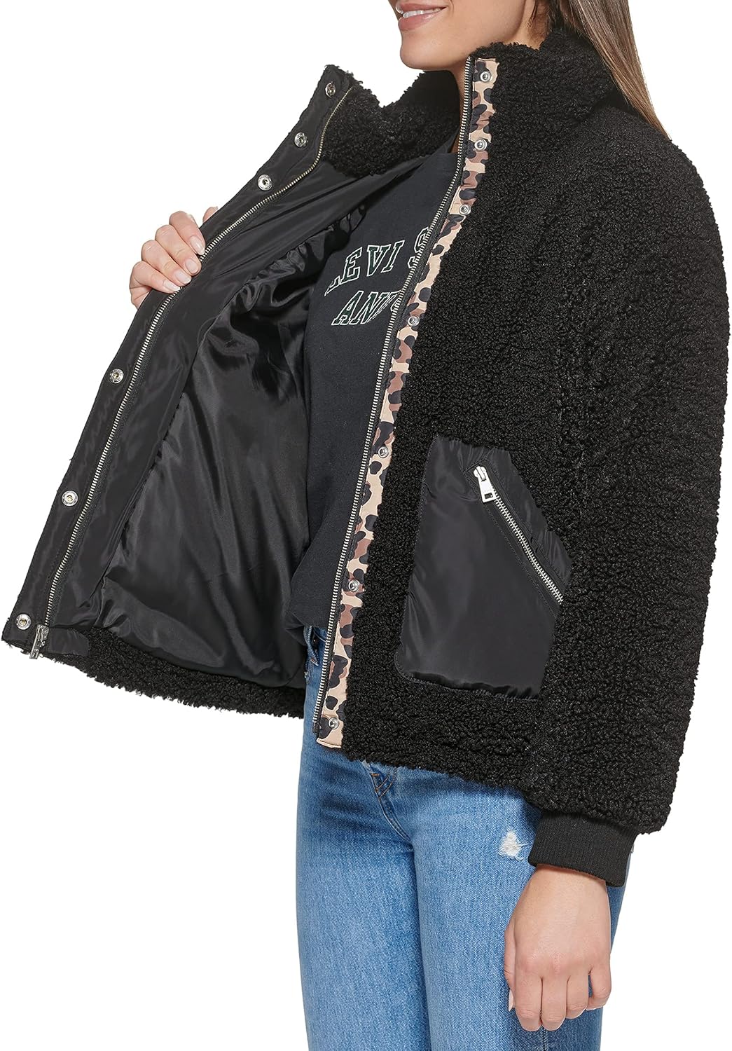Женская куртка Levi's из шерпы с воротником-стойкой, черный/леопардовый