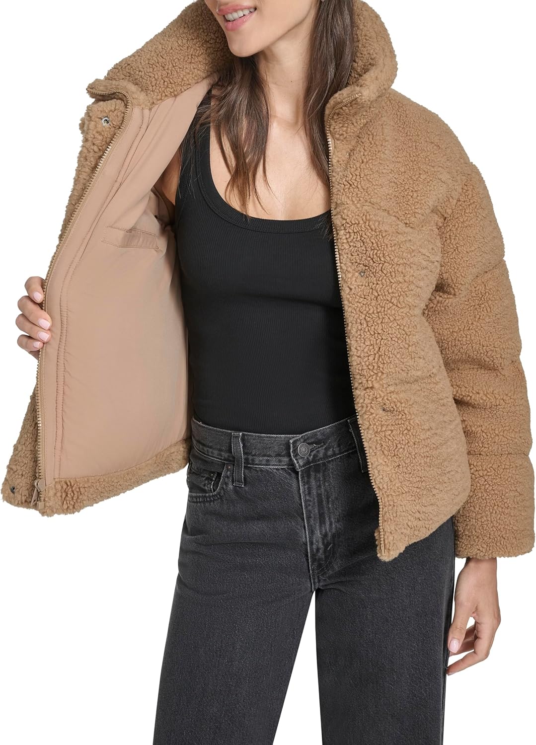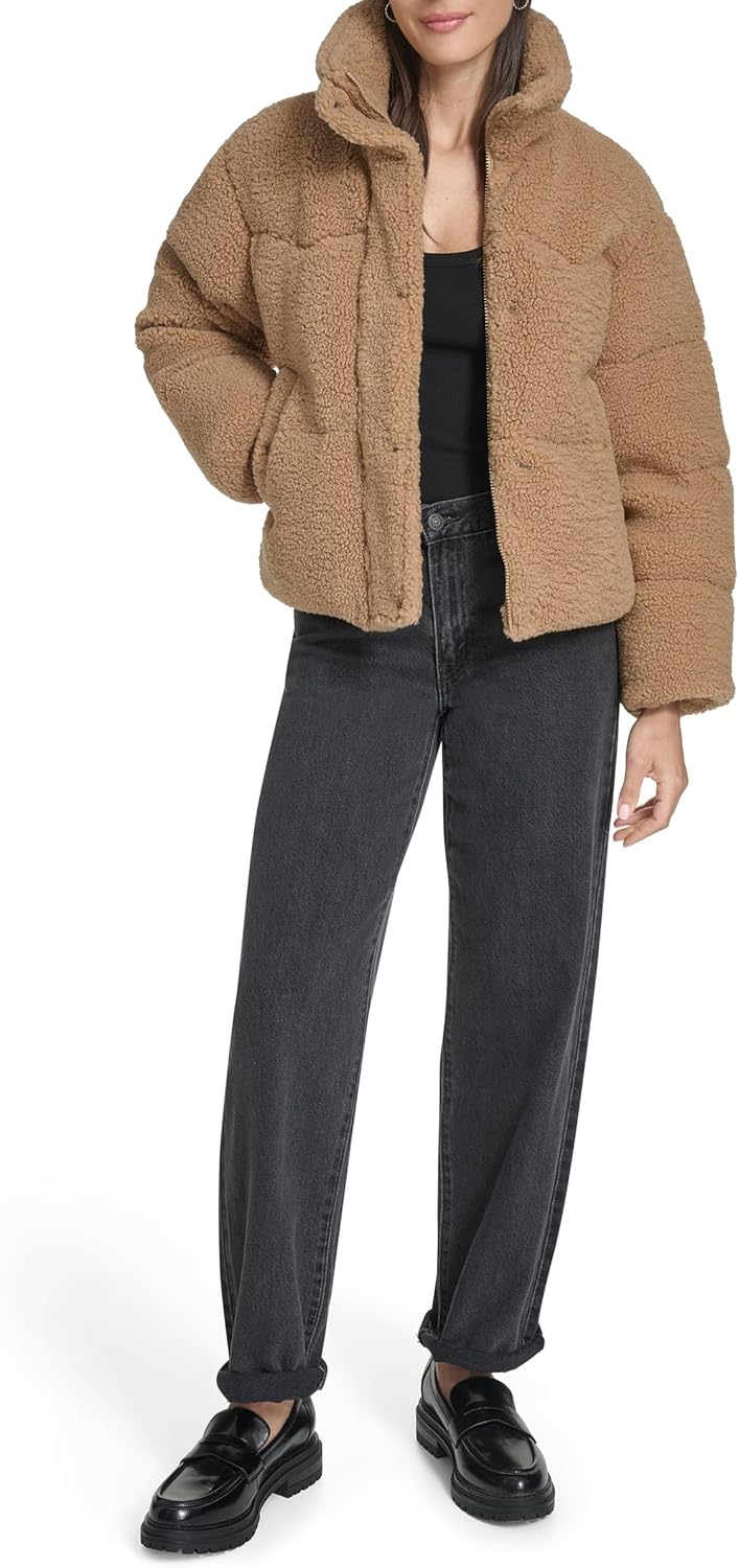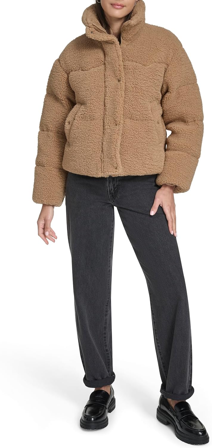 Женский пуховик Levi's короткий объемный, коричневый