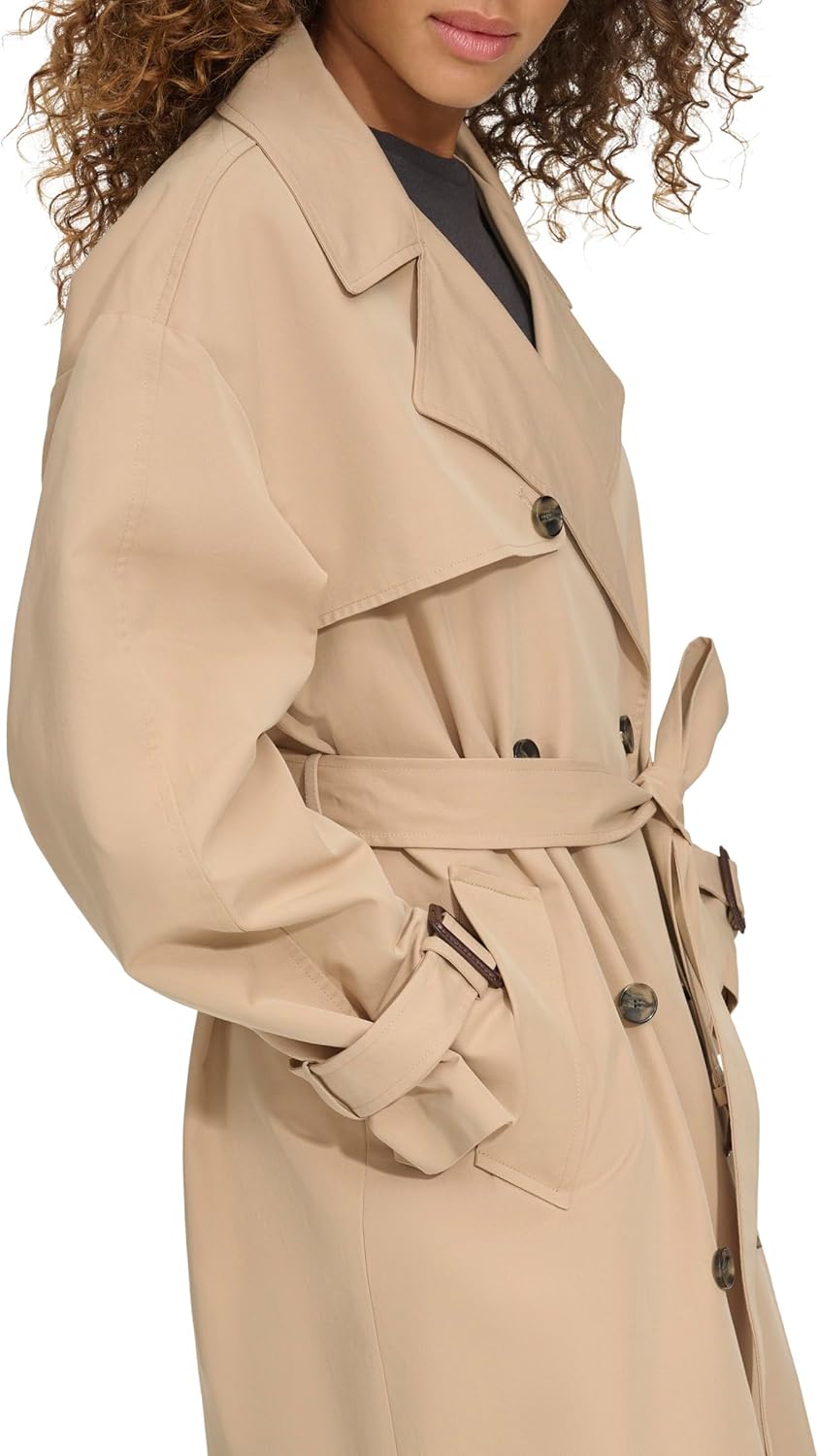 СТИЛЬНЫЕ ХАРАКТЕРИСТИКИ: Длинный тренч с застежкой на пуговицы и пряжку. МАТЕРИАЛ: Супермягкая дышащая ткань на основе хлопка. ФУНКЦИОНАЛЬНОСТЬ: Регулируемая застежка на пряжку со съемным ремнем, регулируемые манжеты на пряжке.