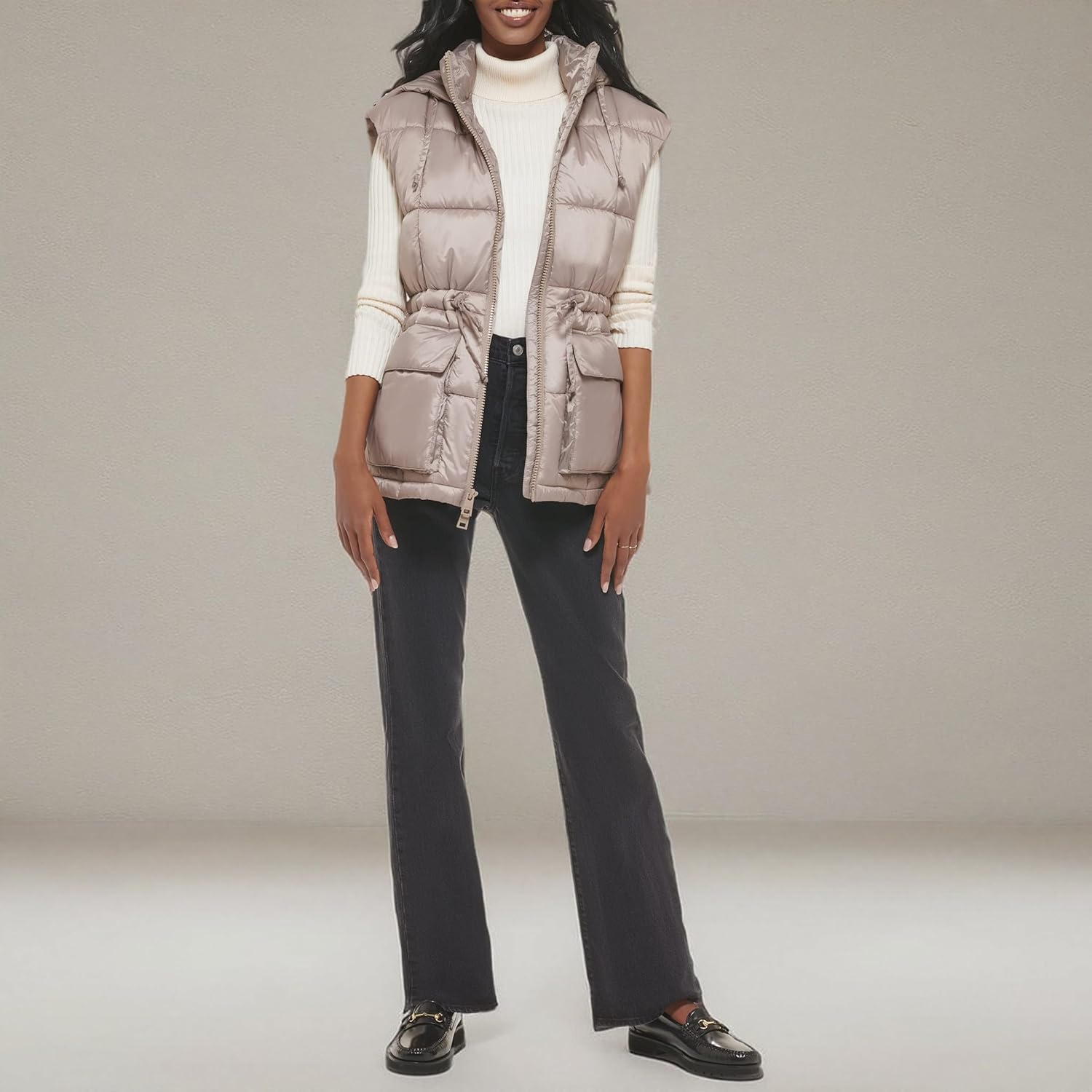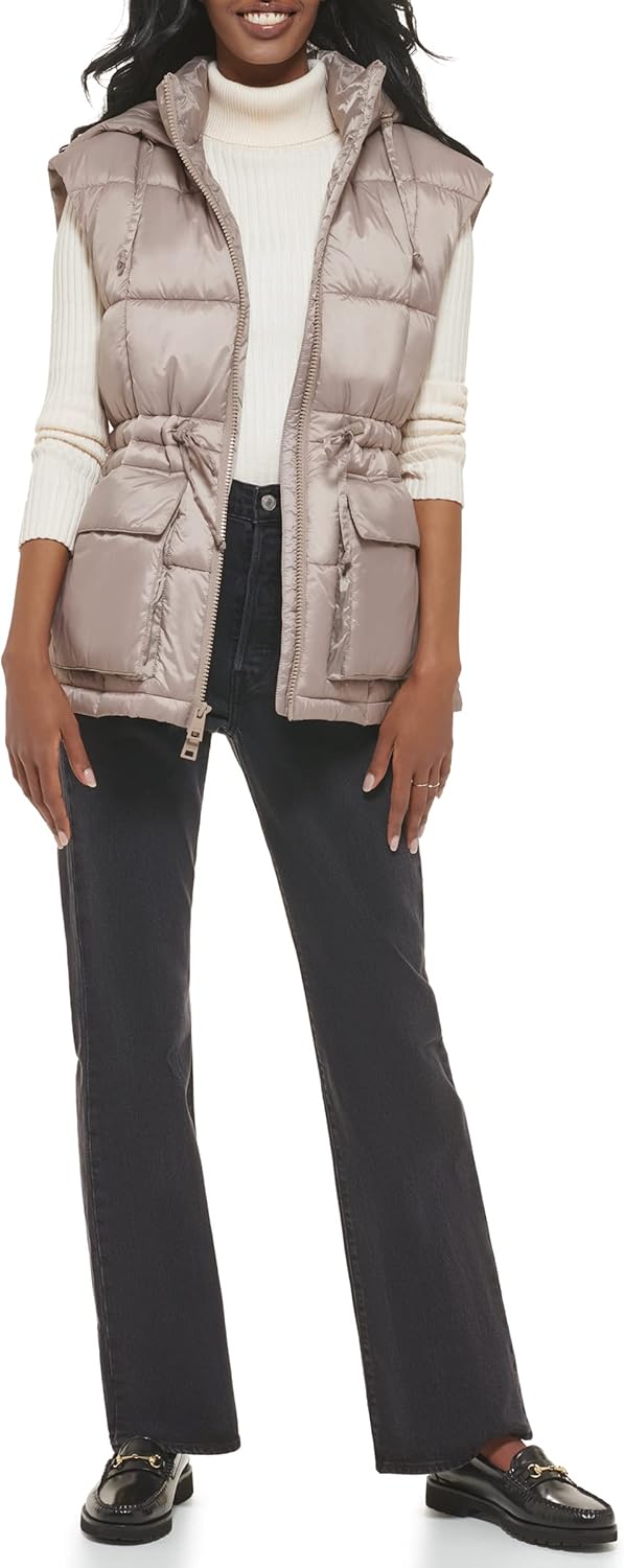 Оставайтесь в тепле, чувствуйте себя комфортно и будьте в тренде в этом сезоне — эта утепленная куртка с капюшоном и приталенной талией наполнена теплым альтернативным утеплителем из пуха и оснащена нижними карманами на кнопках с боковым входом, застежкой-молнией по центру спереди и прикрепленным капюшоном с регулируемым шнурком.