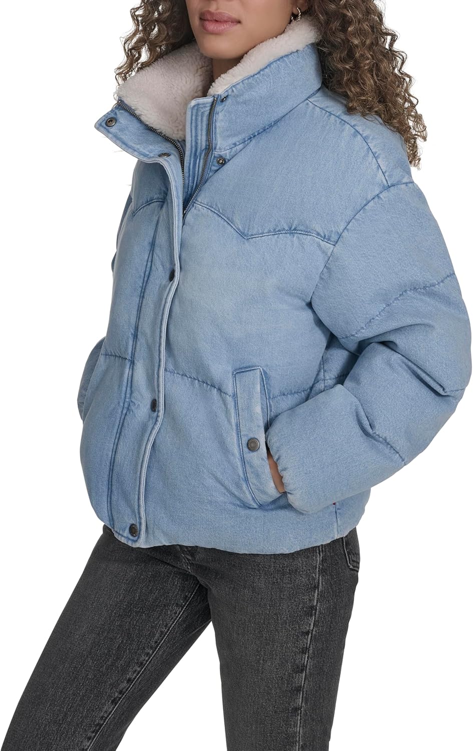 Эта женская стеганая куртка с воротником-стойкой, мягким шерповым воротником и фирменной дугообразной кокеткой сочетает в себе уют и очарование вестерна. Благодаря структурированному силуэту и способности согревать в холодную погоду, она станет незаменимым предметом гардероба для прохладных дней.