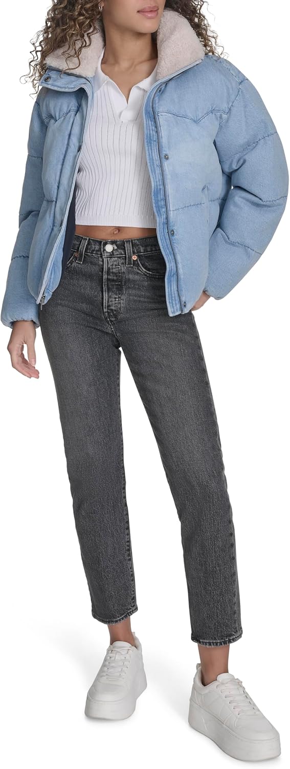 Женский пуховик Levi's короткий объемный, голубой