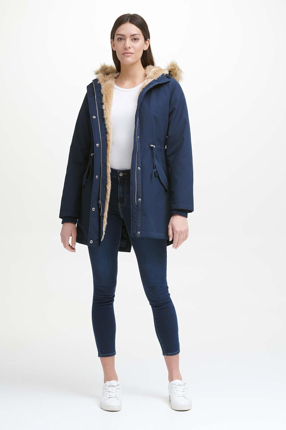 Женская парка Levi's с капюшоном на искусственном меху, темно-синий