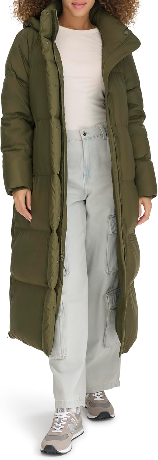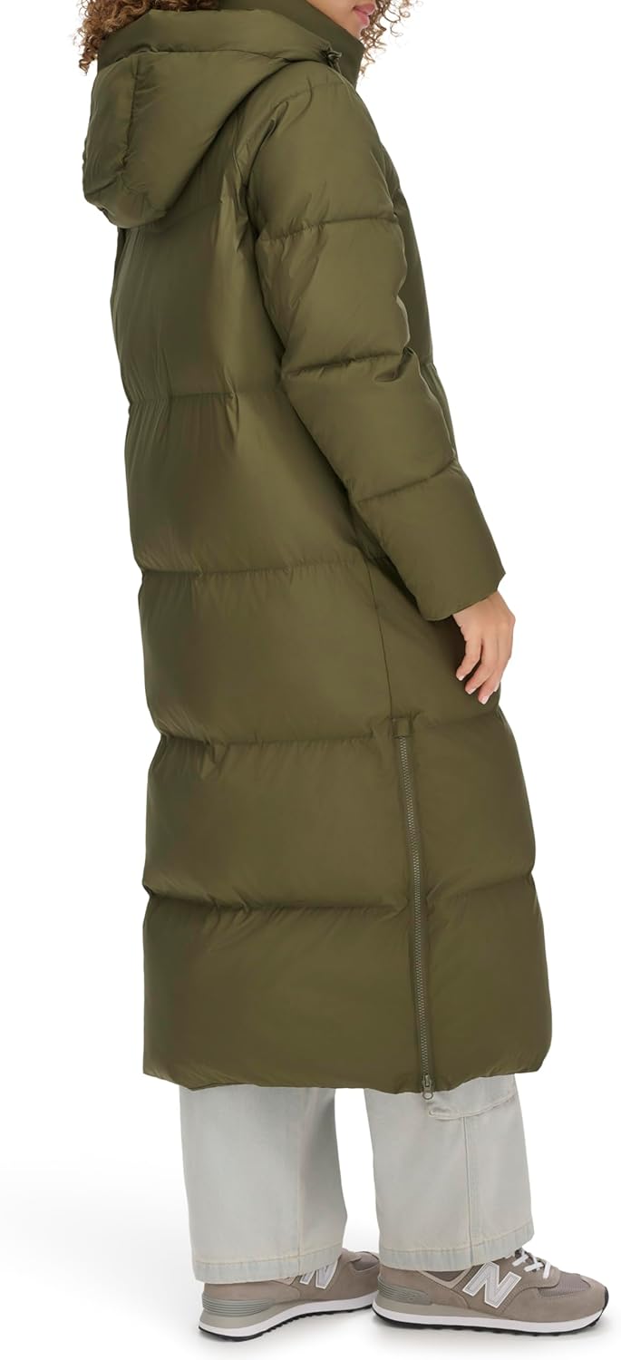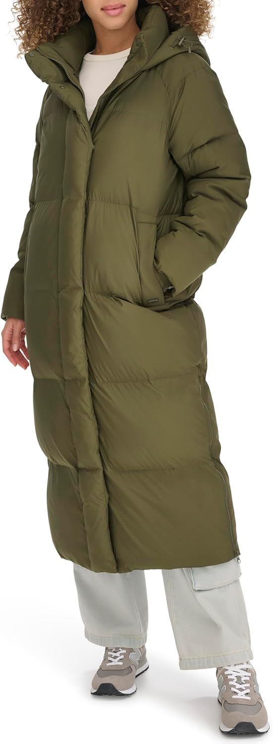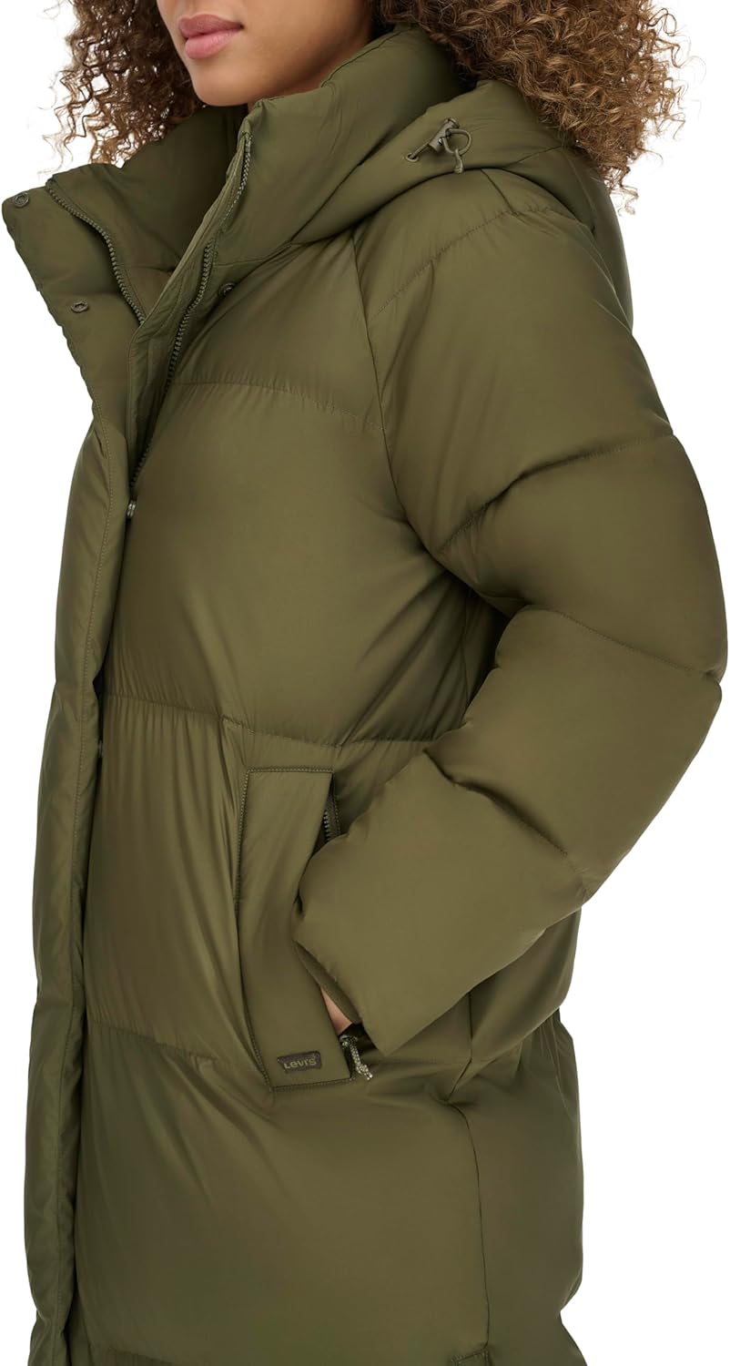Женский пуховик Levi's удлиненный с капюшоном, оливковый