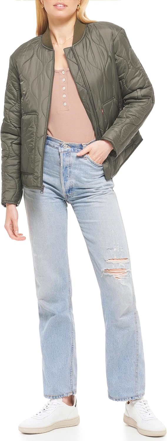 Женская куртка Levi's стеганая с узором "лук", серо-зеленый