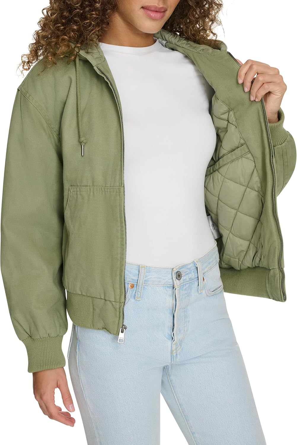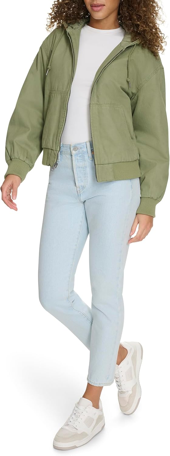 Женская куртка-бомбер Levi's из хлопка с капюшоном, зеленый