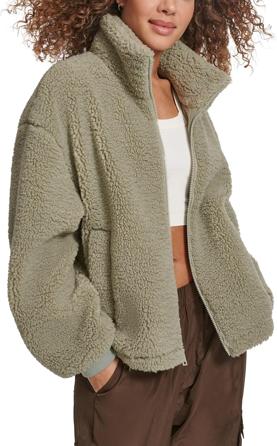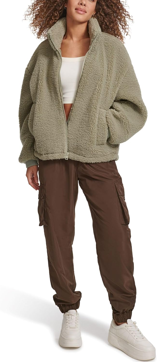Женская куртка Levi's из шерпы плюшевая с воротником-стойкой, зеленый