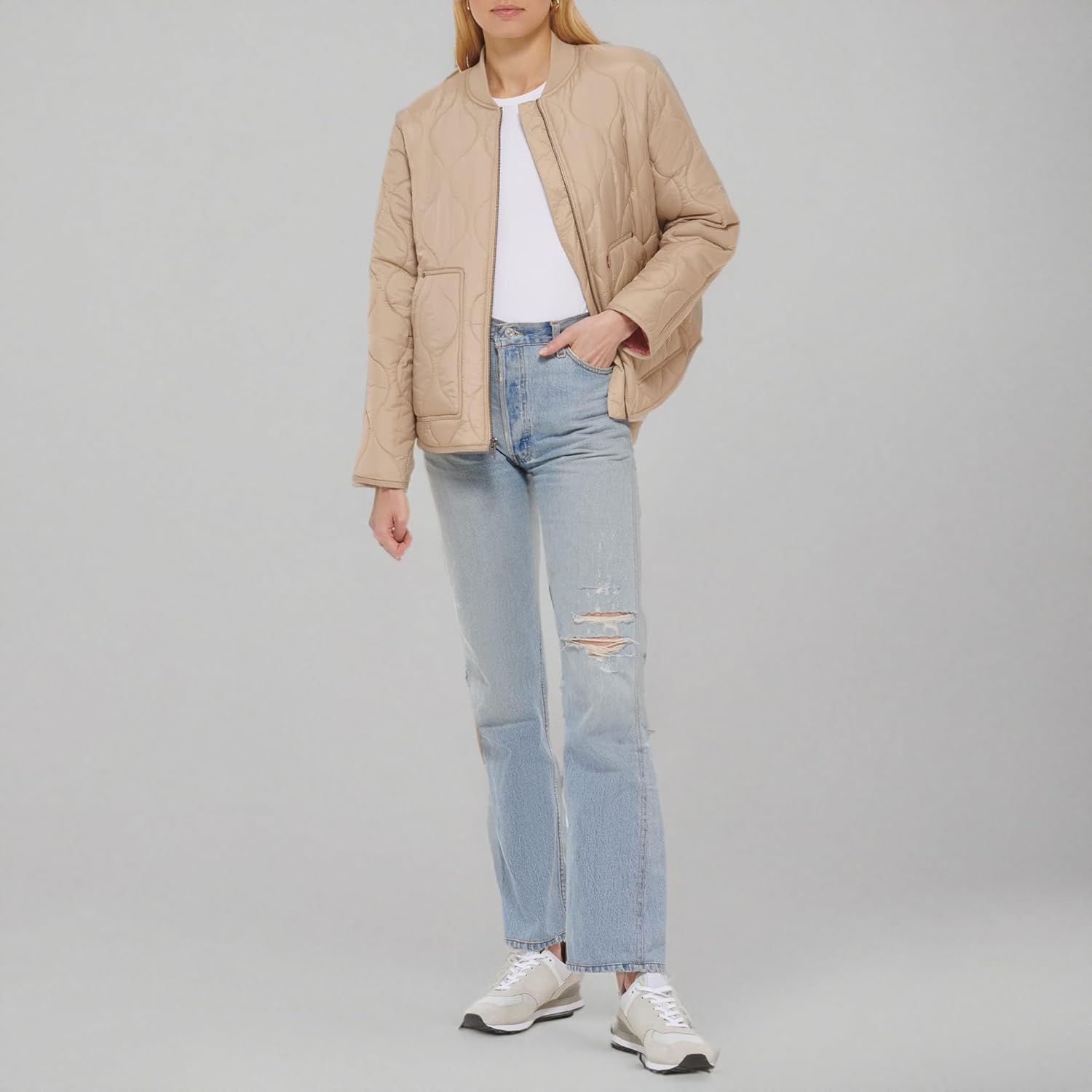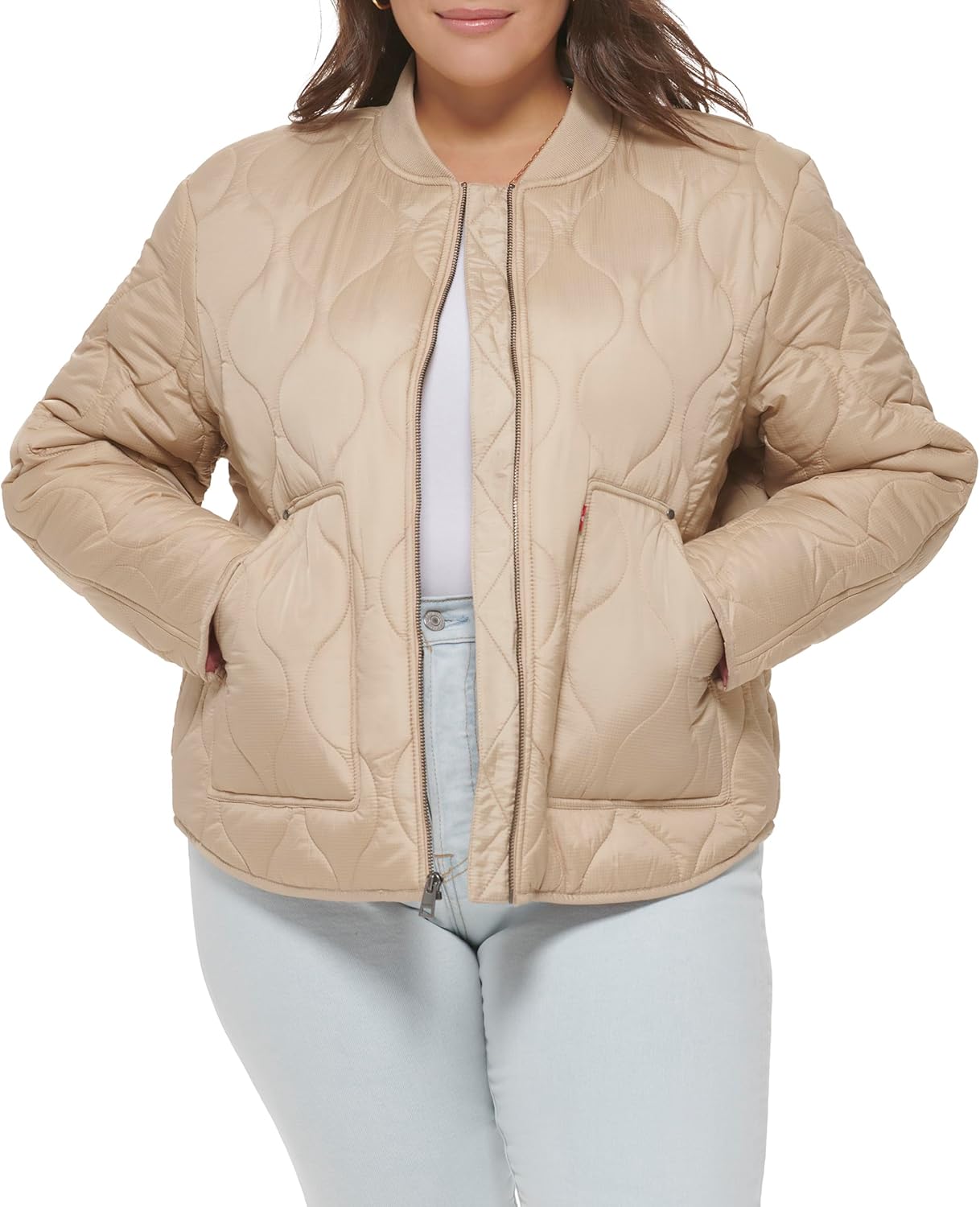 Женская куртка Levi's стеганая с узором "луковица" и карманами, бежевый