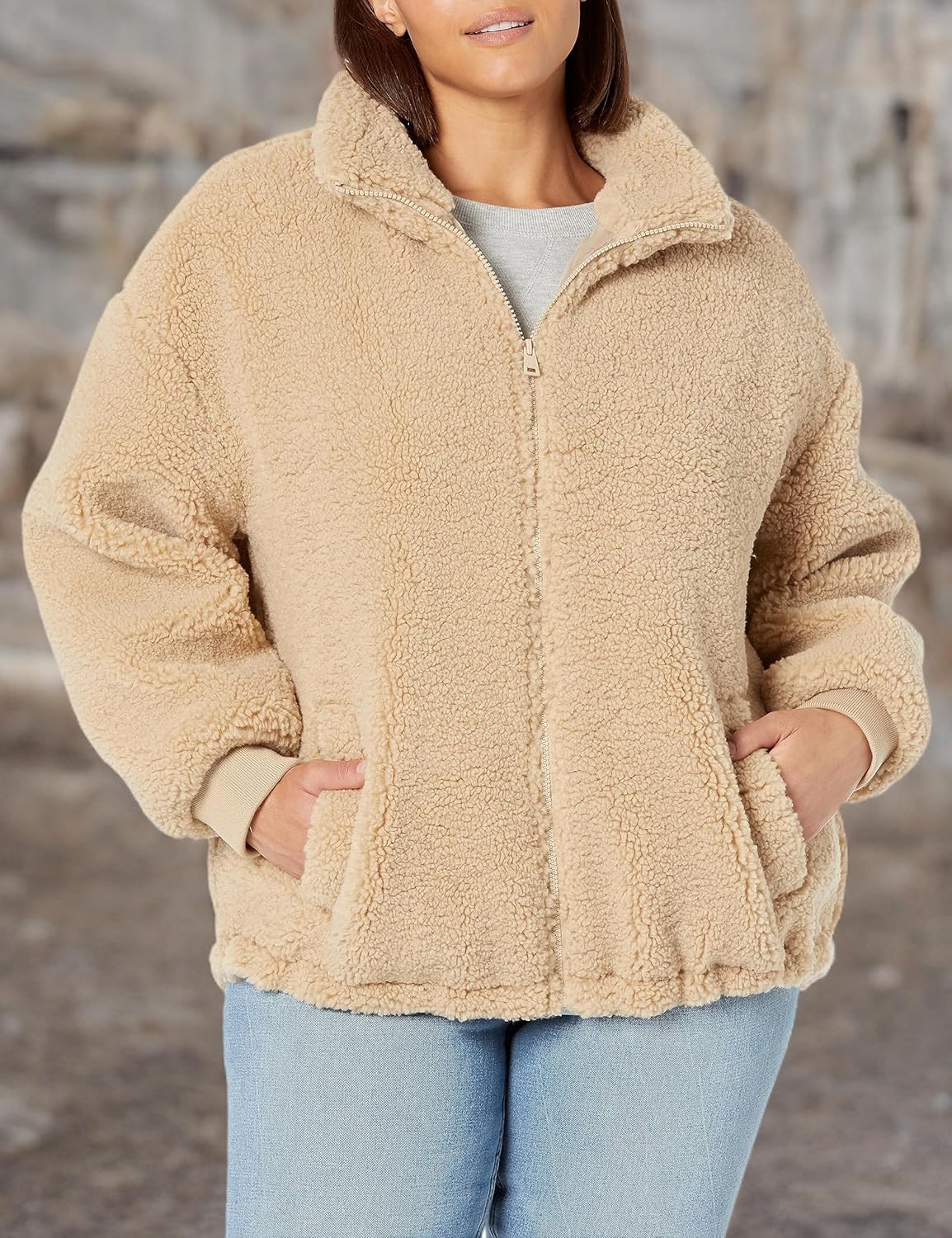 Женская куртка Levi's на молнии из шерпы плюшевая, бежевый