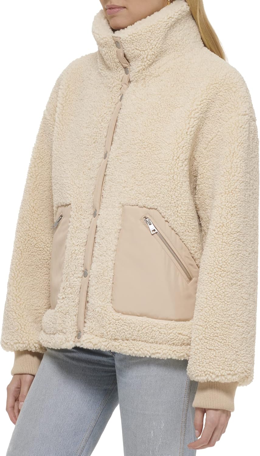 Женская куртка Levi's из шерпы с воротником-стойкой, экрю