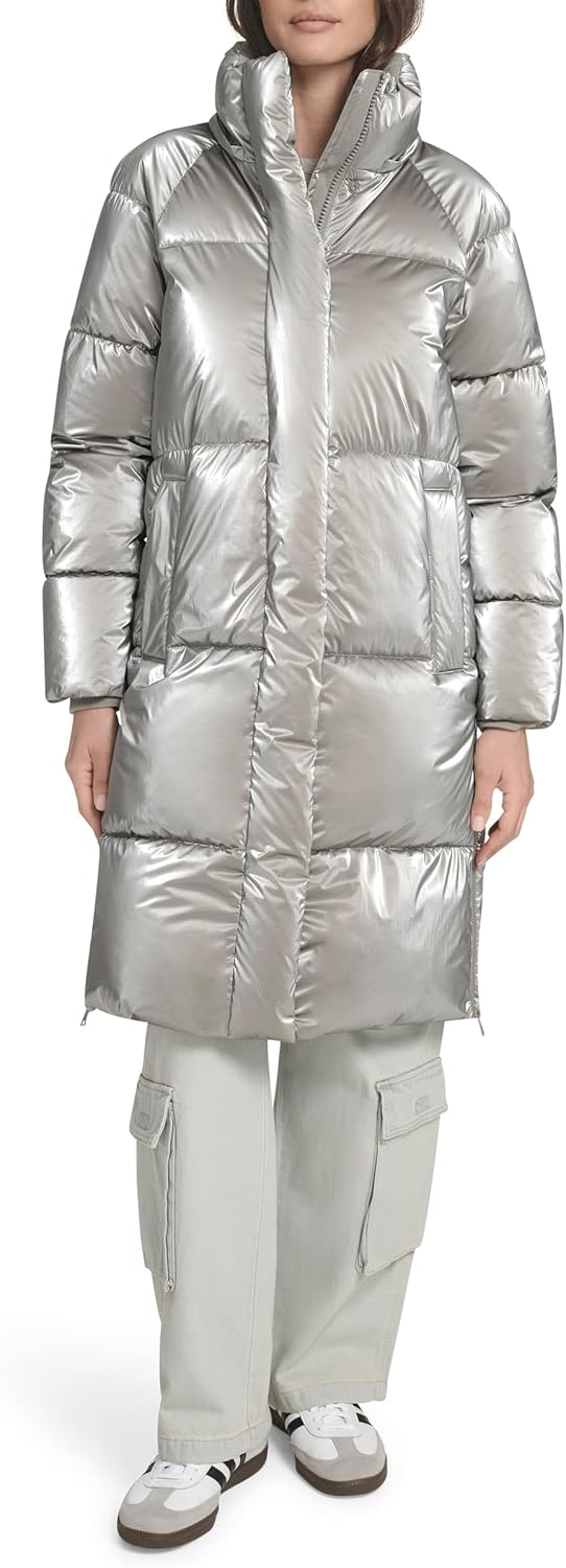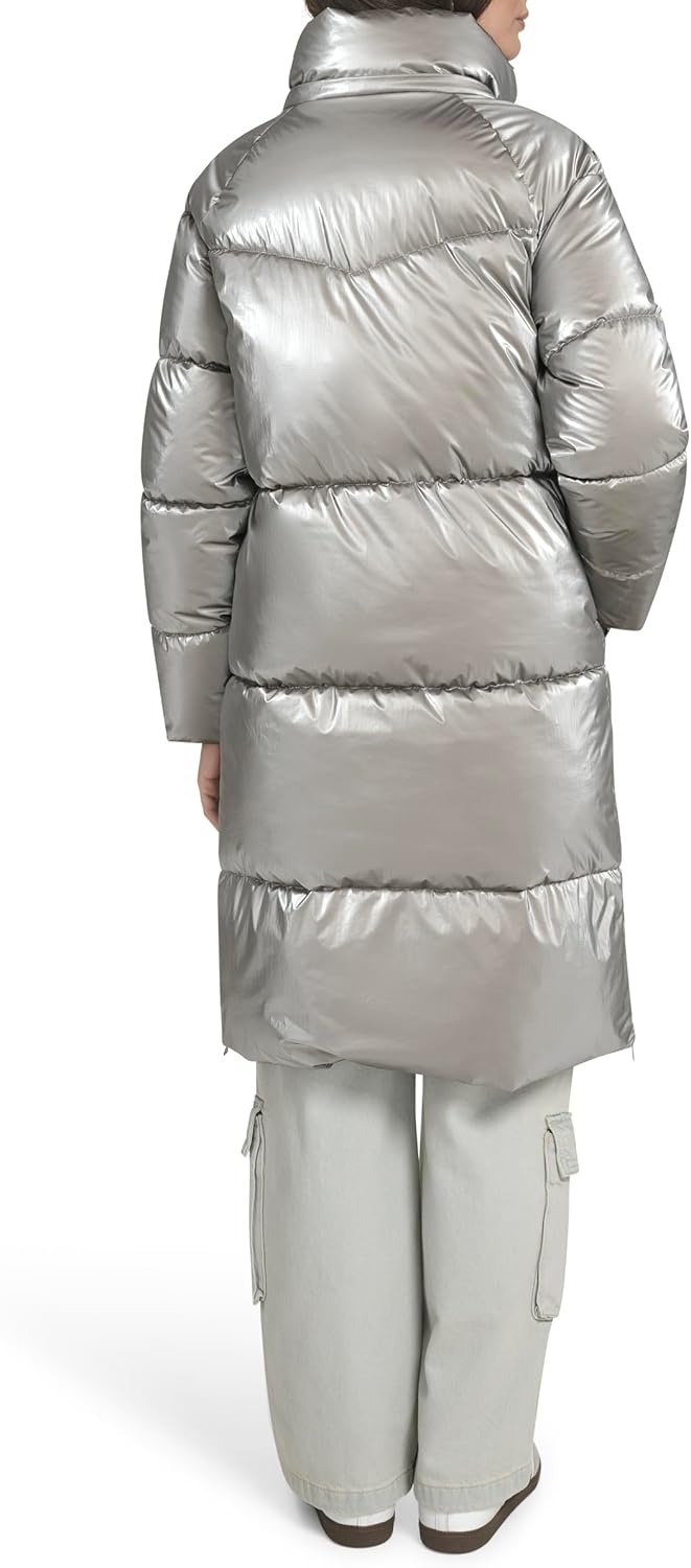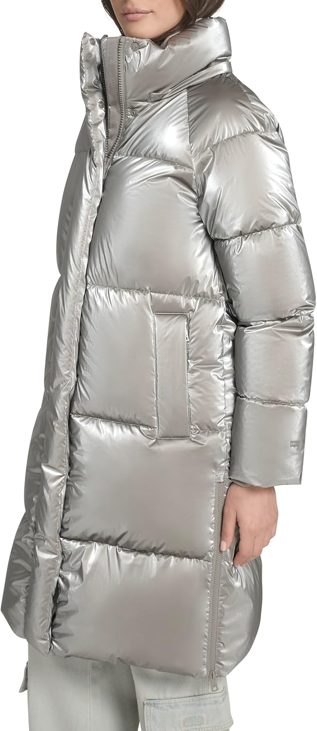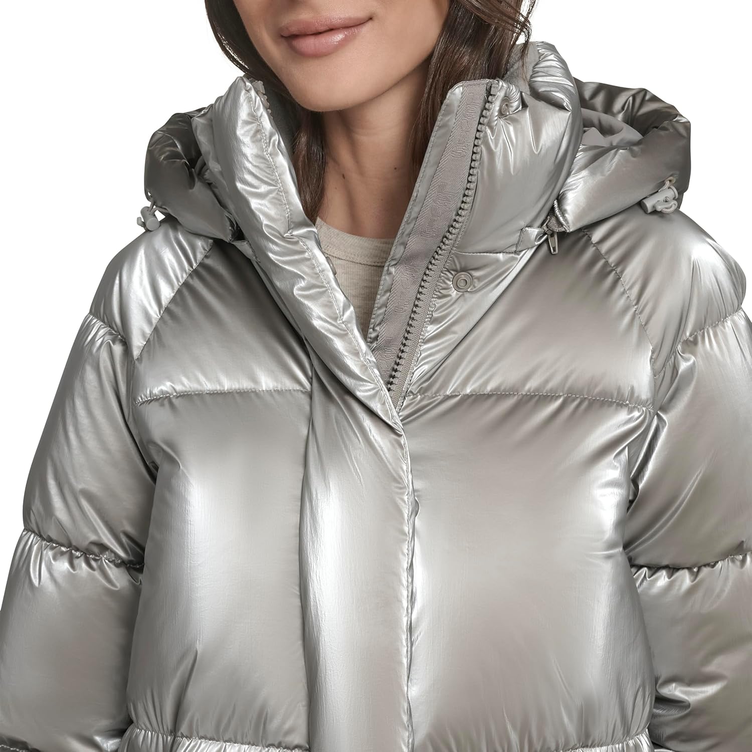 Женская куртка Levi's Cloud Puff утепленная с капюшоном средней длины, серебристый