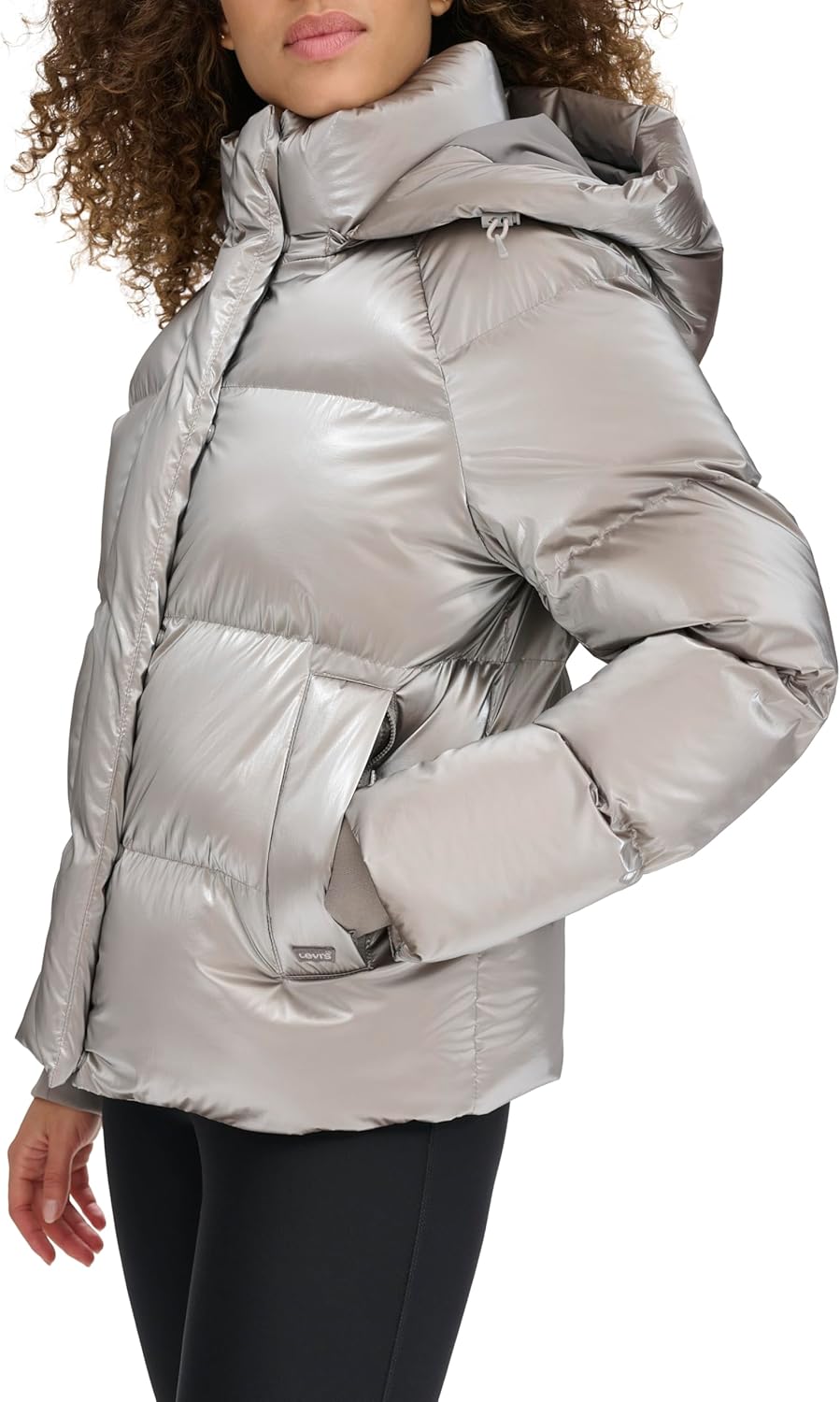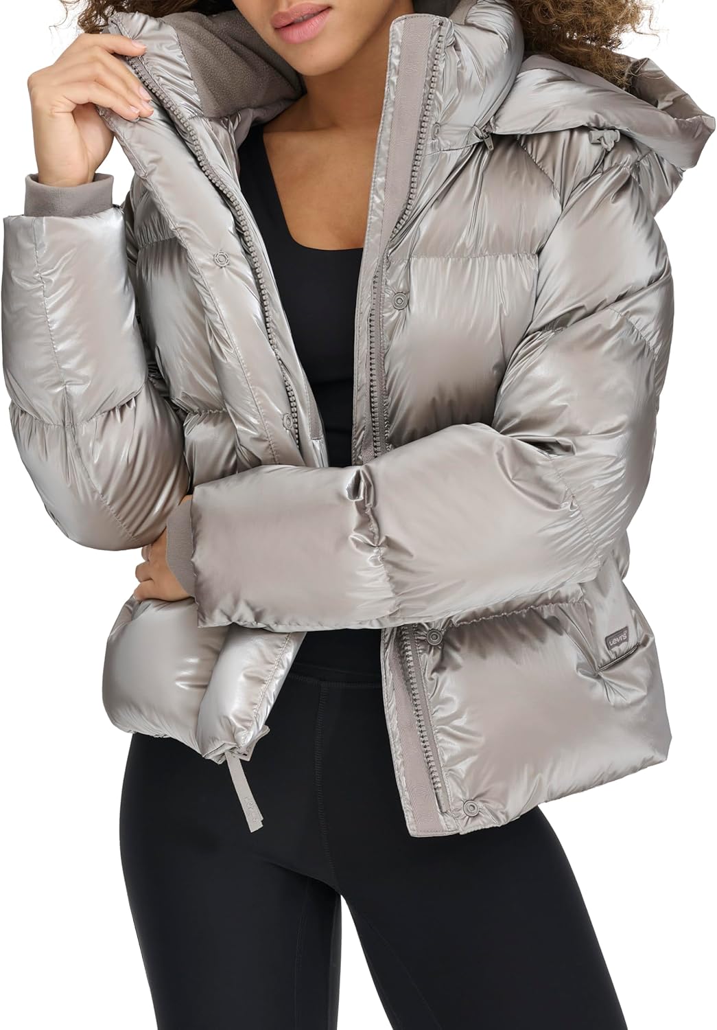 Женская куртка Levi's Cloud Puff с капюшоном утепленная, серебристый металлик