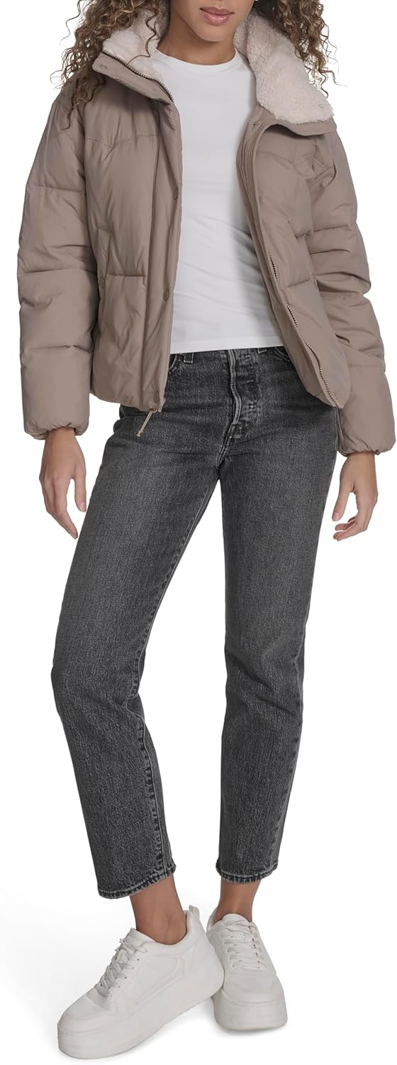 Женская куртка-пуховик Levi's стеганая короткая, серо-коричневый