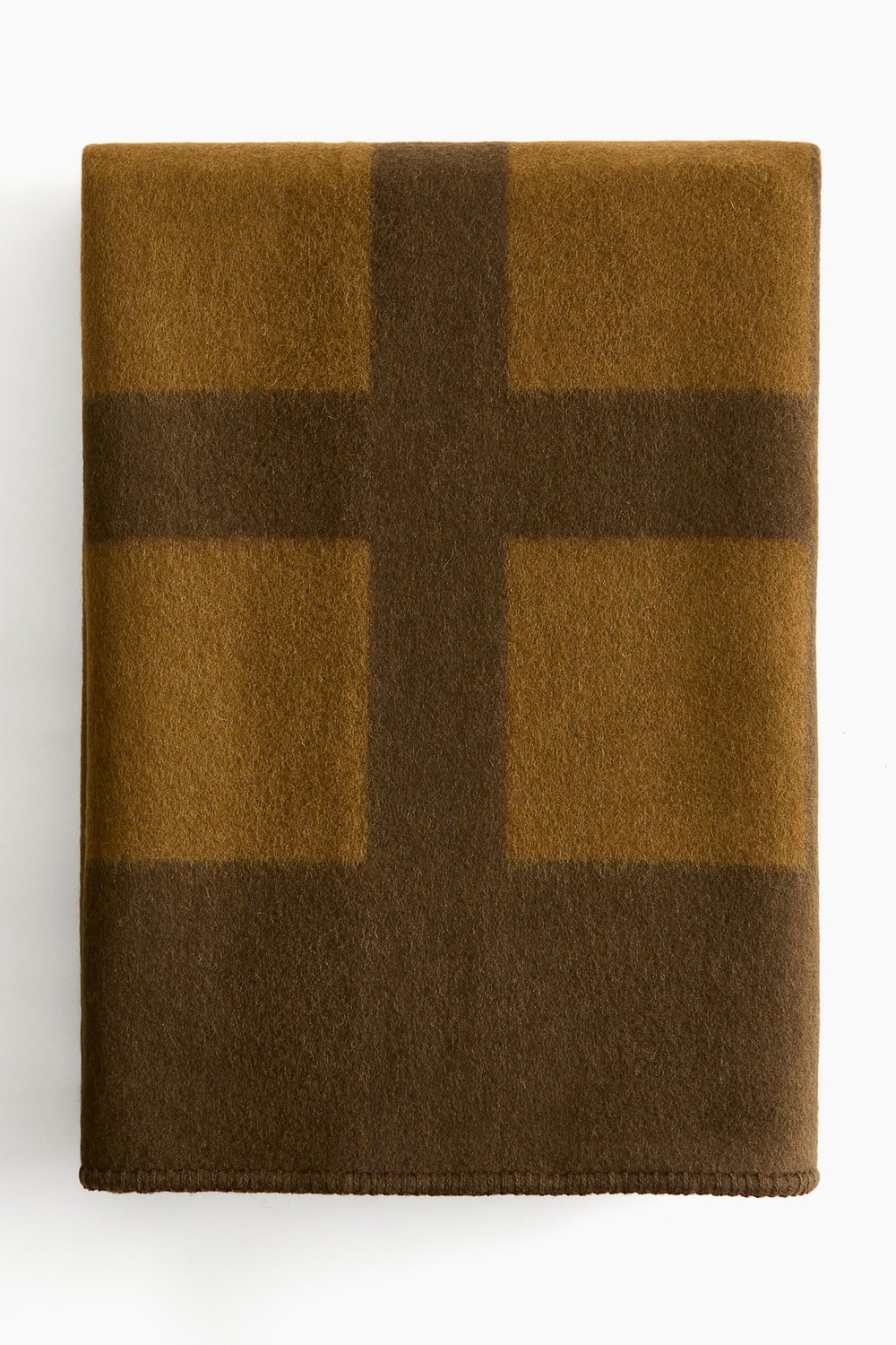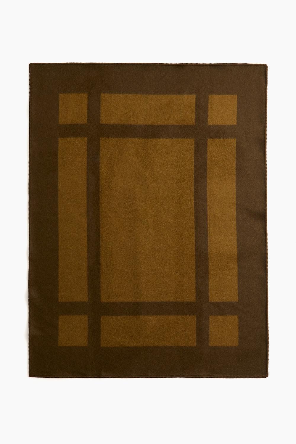 Плотное одеяло из шерстяной ткани с эффектным жаккардовым узором. Края отделаны декоративной строчкой.