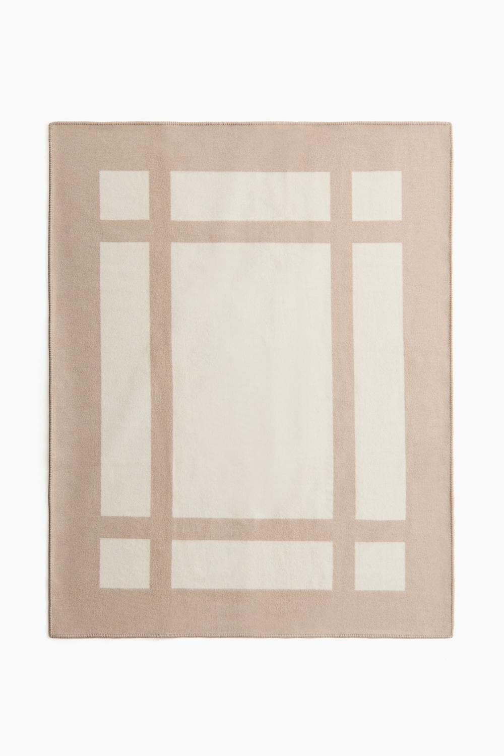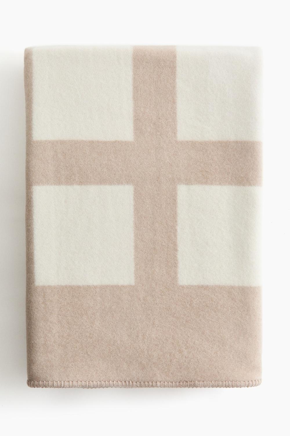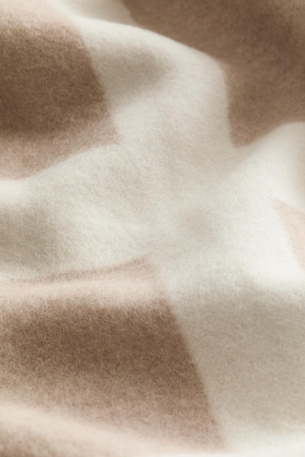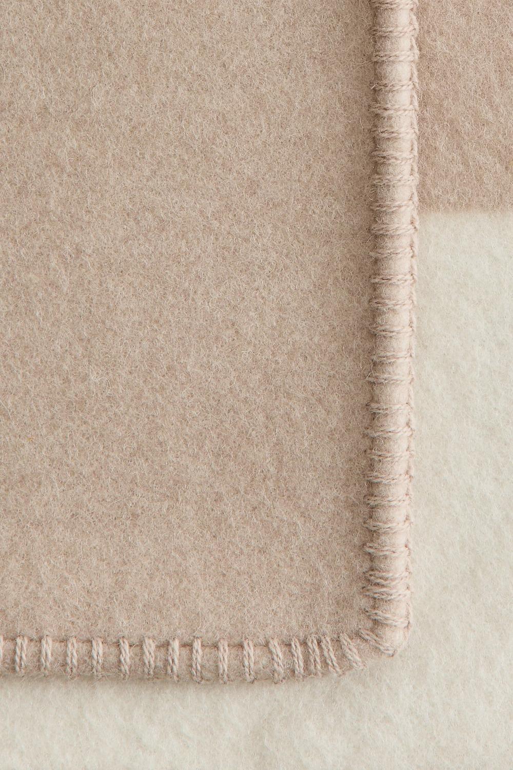 Плотное одеяло из шерстяной ткани с эффектным жаккардовым узором. Края отделаны декоративной строчкой.