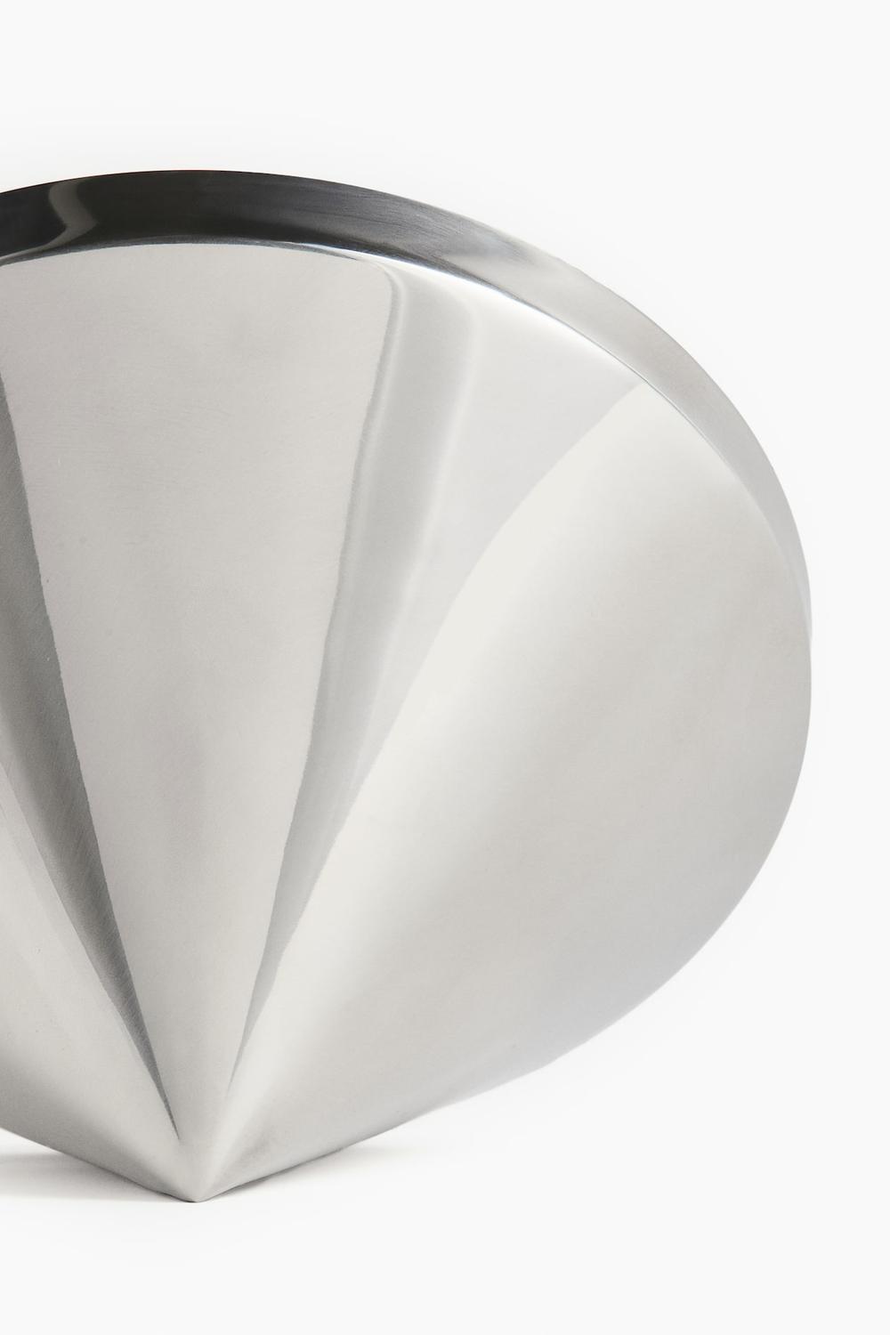 Зеркало конусообразной формы с уникальным дизайном, обеспечивающим устойчивость. Рама имеет матовую отделку. Стильный и функциональный элемент, сочетающий в себе современную эстетику и практичность.