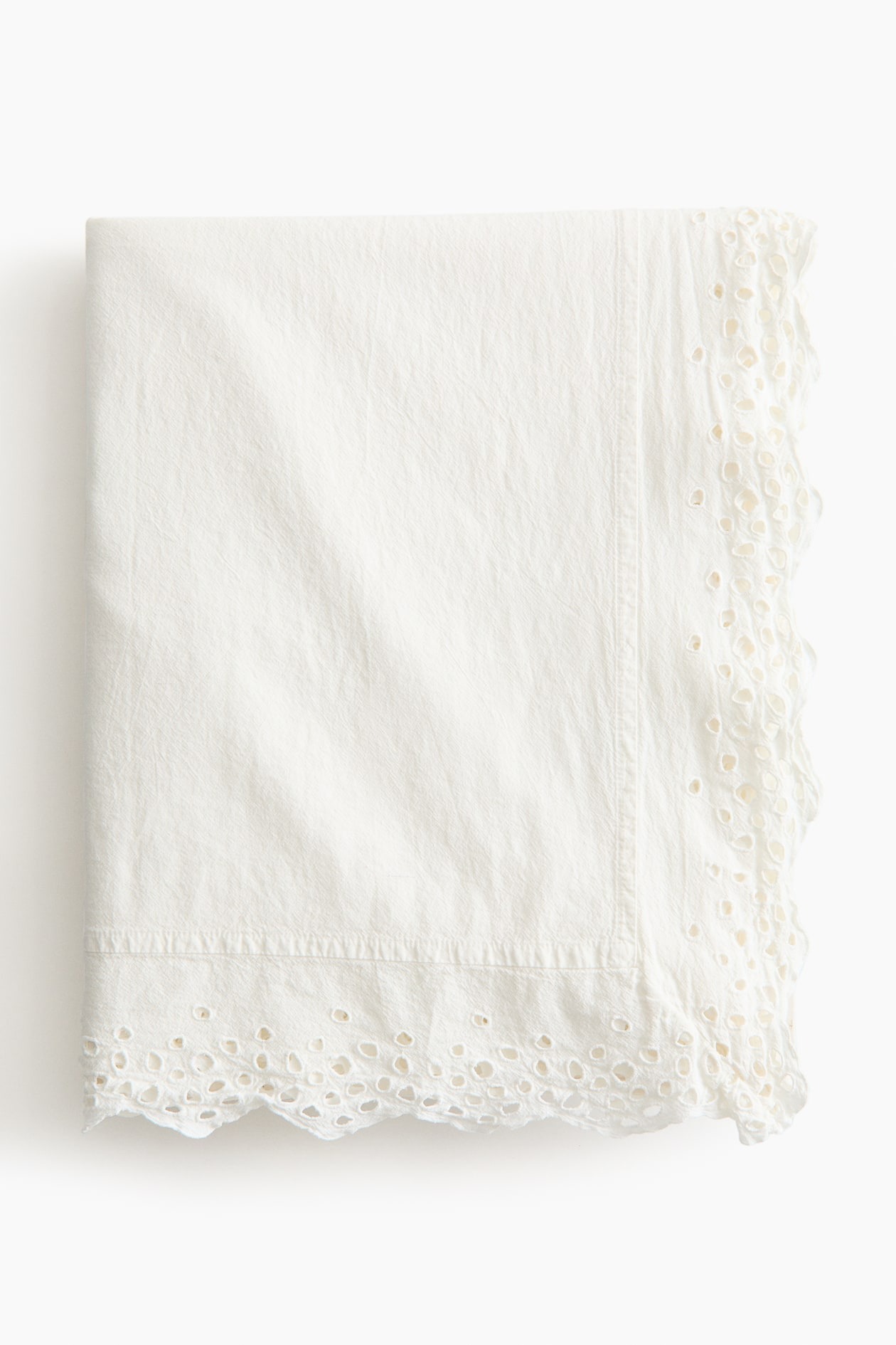 Скатерть из нежной хлопковой ткани. Волнистый край с изящной вышивкой ришелье.