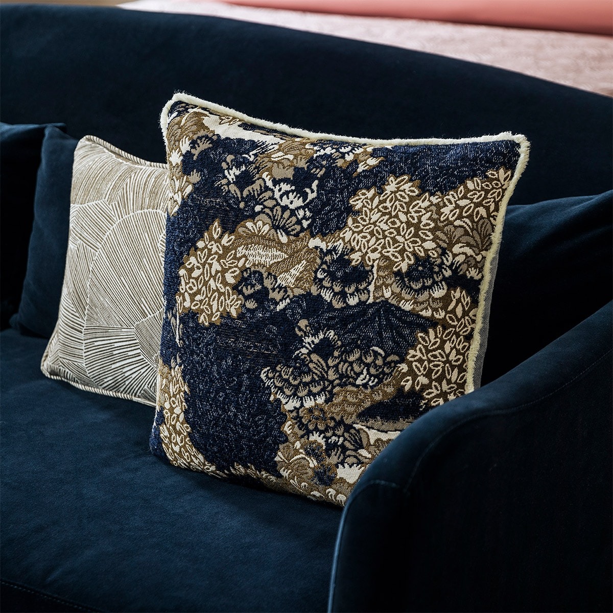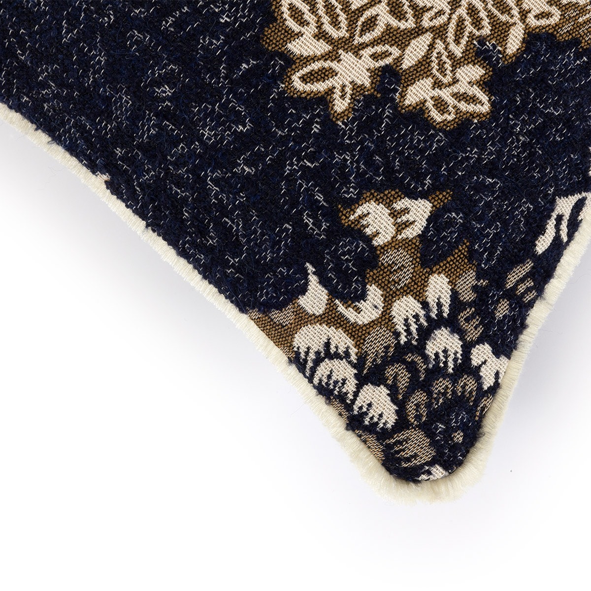 Наволочка на подушку с рисунком листьев в естественных тонах на темном фоне.