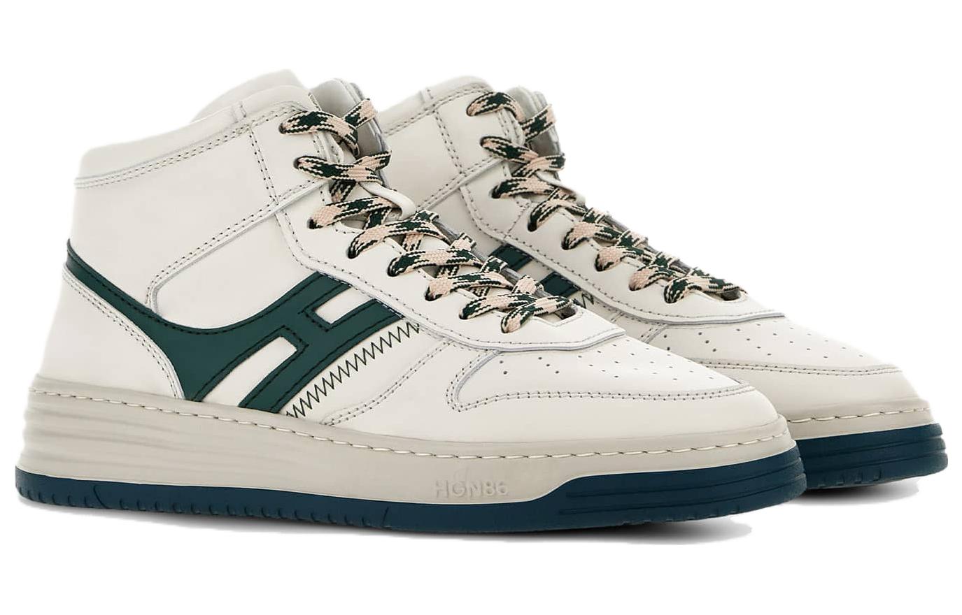 Новая серия высоких кроссовок Hogan H630 сочетает в себе ретро-элементы, баскетбольный дизайн и традиционный стиль бренда. Гладкая кожаная поверхность, буква H на боковой части простирается до пятки. Подошва выполнена из материала EVA, обеспечивая легкость и комфорт. Боковая часть украшена объемным логотипом HGN86 и полосами, воссоздавая очарование серии Rebel.