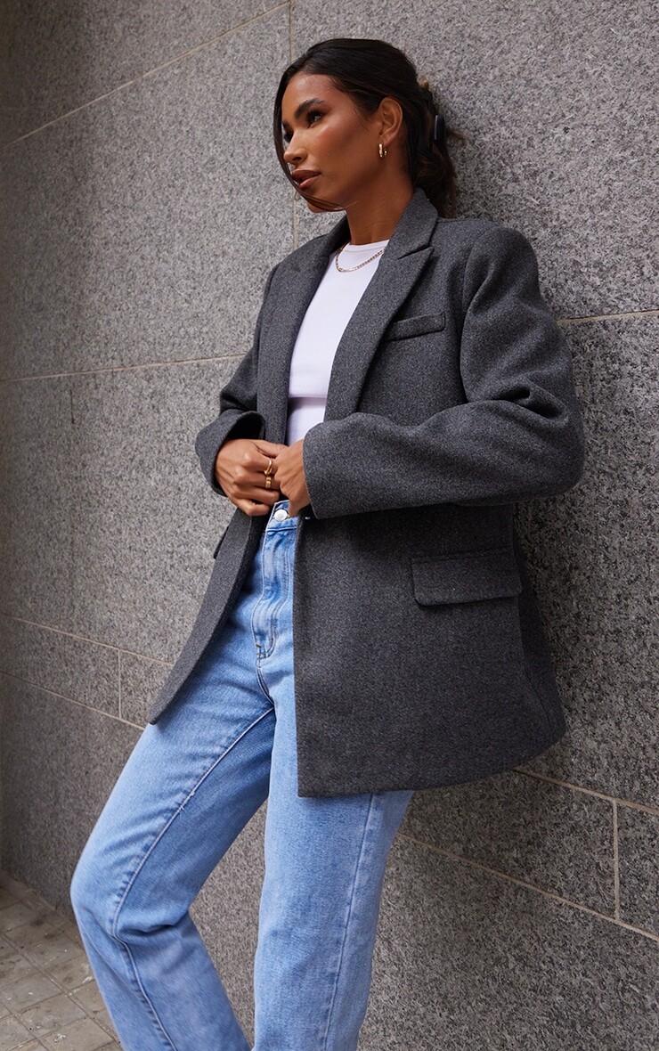 PrettyLittleThing Серый двубортный шерстяной пиджак