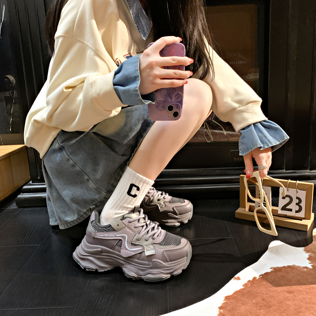 Xingdiman Серые женские кроссовки на платформе, цвет Gray