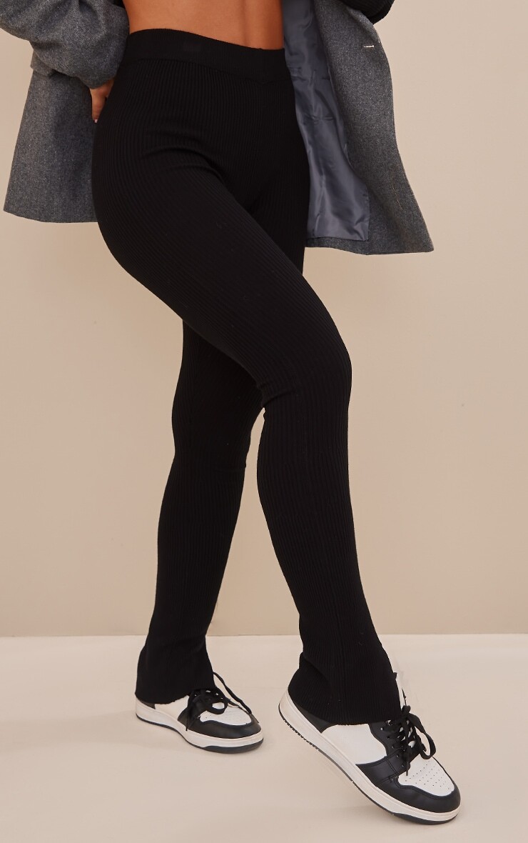 PrettyLittleThing Черные трикотажные брюки-клеш с разрезом на подоле