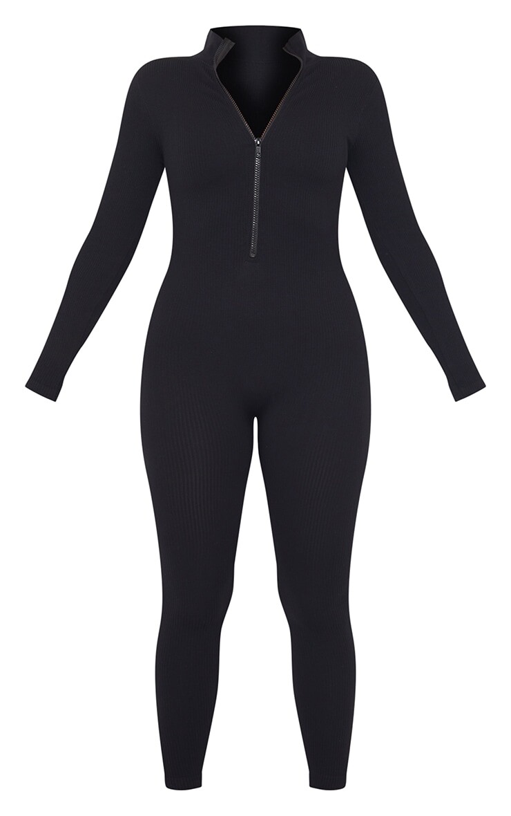 Этот комбинезон возглавил хит-лист нашего нового сезона. Черный ребристый материал, структурированный дизайн и молния спереди. Создайте повседневный, но стильный образ с удобными шлепанцами.