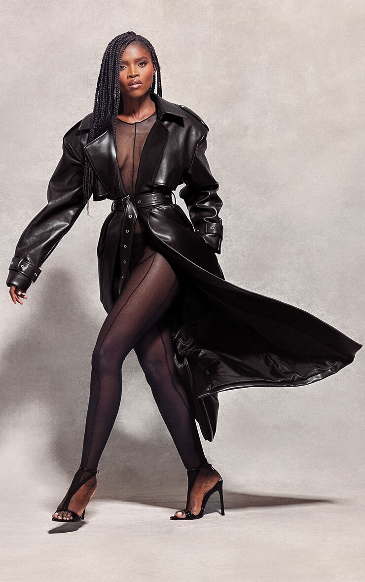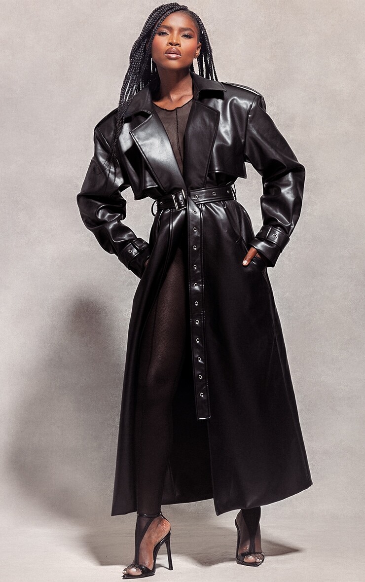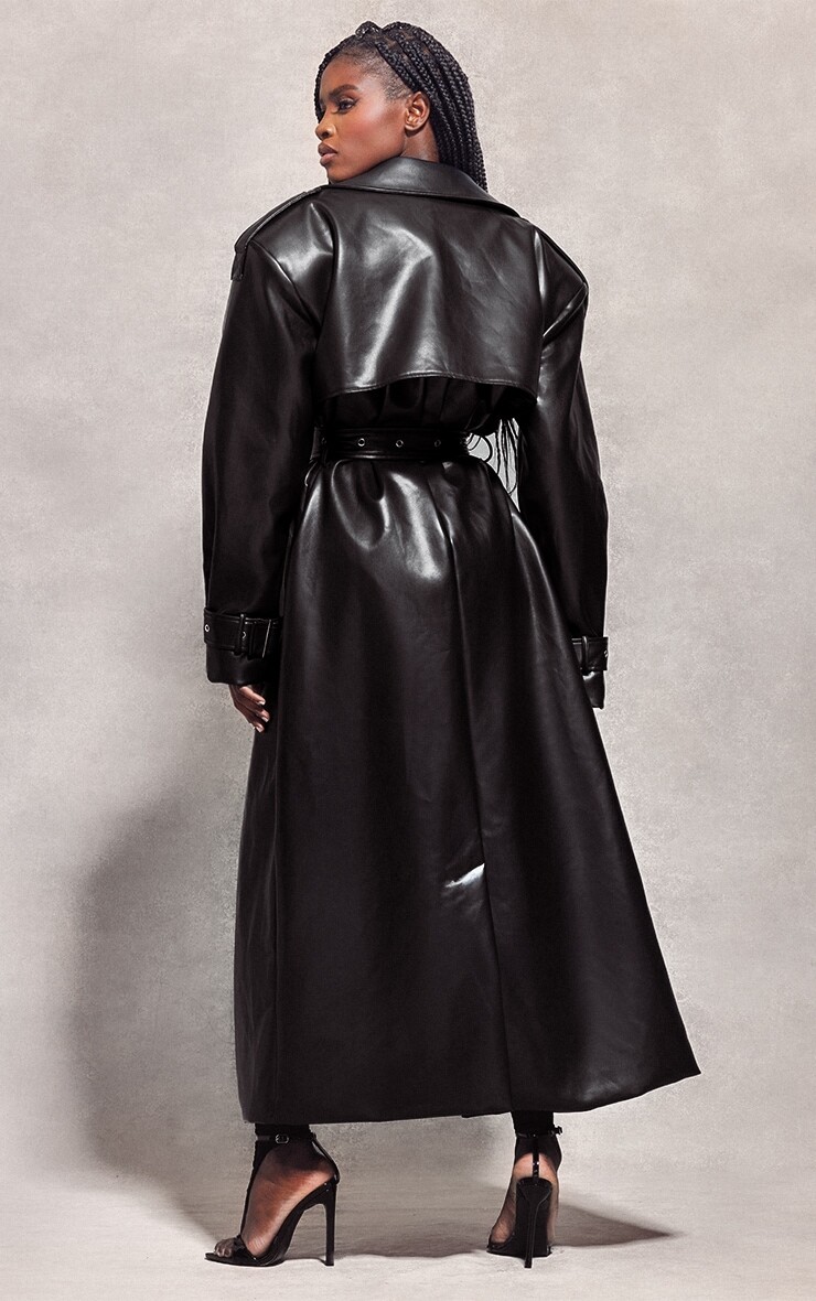 PrettyLittleThing Черный объемный тренч из искусственной кожи