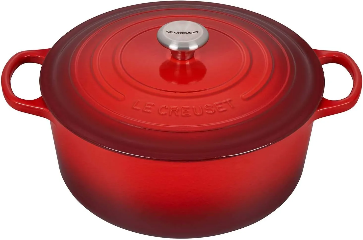 Кастрюля с эмалированным покрытием Le Creuset Signature объемом 8500 мл, круглая, французская, вишневая, показана в цвете огня. Также известна как голландская кастрюля, этот обновленный кухонный классик улучшает процесс приготовления, равномерно распределяя тепло и запечатывая оптимальное количество влаги. С эргономичными ручками и усовершенствованной внутренней эмалью, которая устойчива к сколам и легко очищается, французские кастрюли Le Creuset объединяют лучшее из прошлого с последними инновациями в комфорте и функциональности. Цветная, долговечная внешняя эмаль устойчива к сколам и трещинам;внутренняя эмаль разработана для сопротивления образованию пятен и тусклости. Эмаль светлого песочного цвета упрощает контроль за приготовлением пищи, предотвращая подгорание и прилипание. Увеличенные ручки обеспечивают равномерное распределение веса и надежный захват. Эргономичные композитные ручки термостойки до 500°F. Встроенные стабилизаторы крышки обеспечивают надежное и неподвижное крепление.