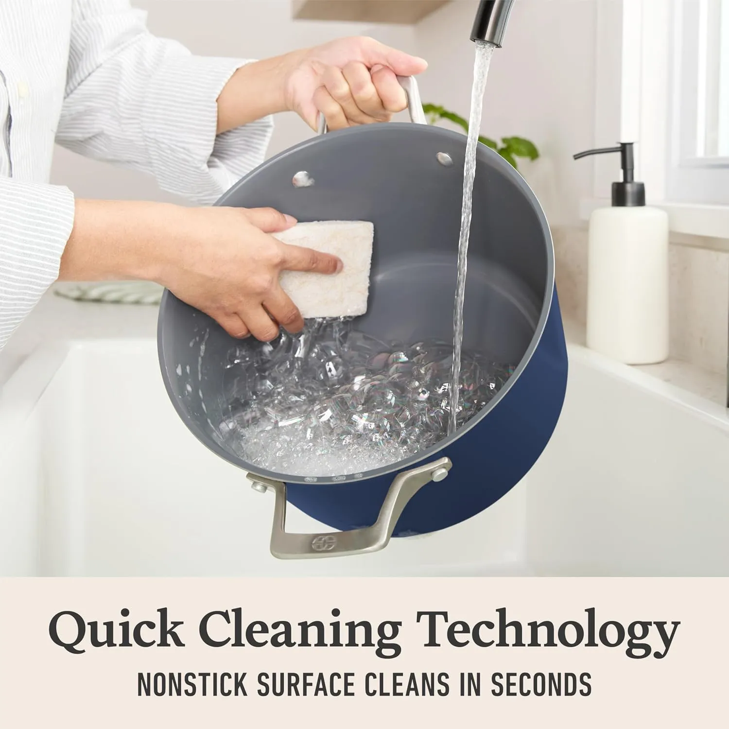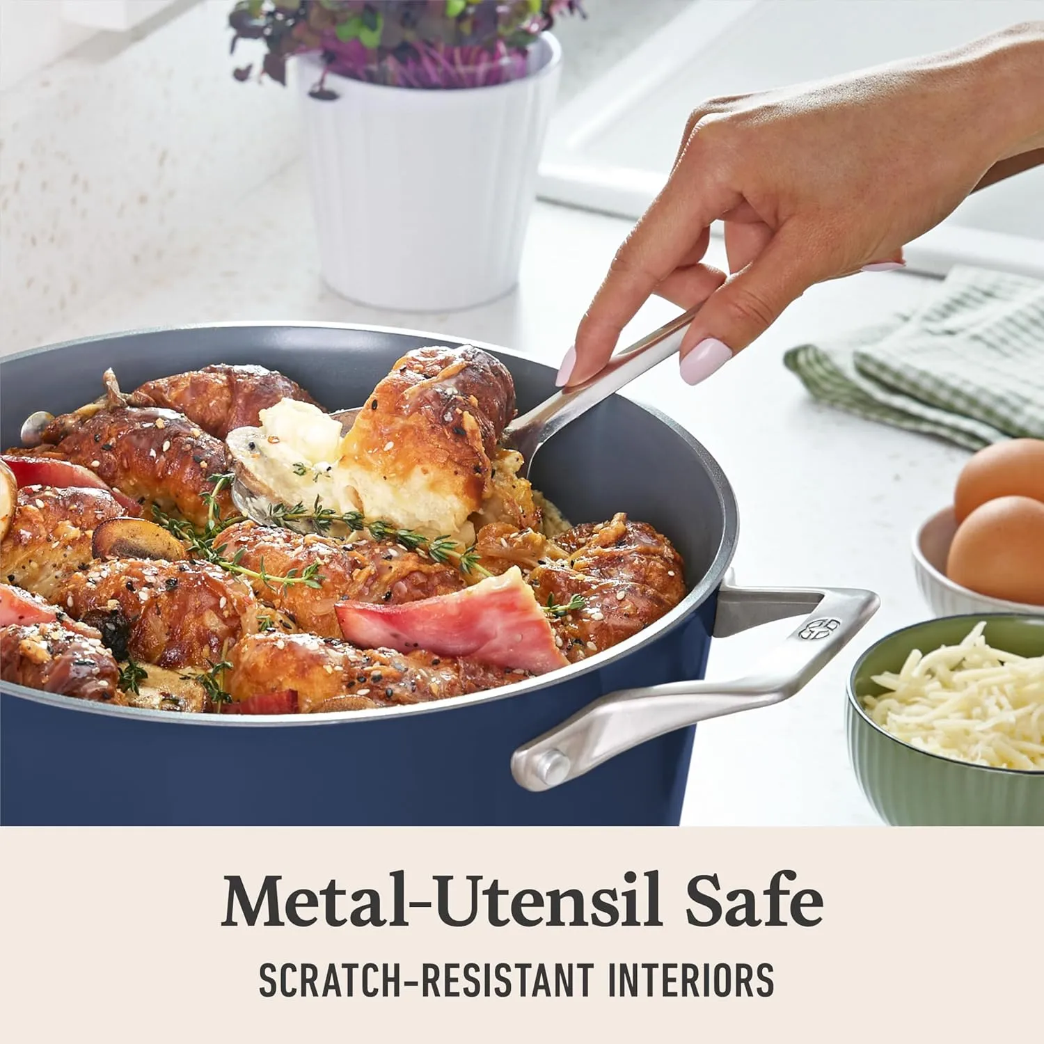 Каждое блюдо станет шедевром с голландской печью Calphalon Premier Ceramic Nonstick. Тщательно разработанная с прочной конструкцией и стильным дизайном, эта голландская печь является выдающимся дополнением к любой коллекции посуды. Используйте сковороды, которые выглядят как новые после каждого использования благодаря нашей технологии быстрой очистки, что делает уборку без усилий. Скажите прощай утомительной чистке и здравствуй долговечности. Анодированная керамическая алюминиевая конструкция обеспечивает быстрый и равномерный нагрев, устраняя горячие точки для точного обжаривания, жарки и золотистости - гарантируя исключительные результаты каждый раз. Конструкция с антипригарным керамическим покрытием, свободным от ПФА, стойким к царапинам и безопасным для металлических кухонных принадлежностей делает приготовление пищи удовольствием. А с технологией быстрой очистки уборка становится легкой. Длинные ручки из нержавеющей стали остаютсяcool на плите, в то время как кастрюли и закаленные стеклянные крышки безопасны для использования в духовке до 500 градусов по Фаренгейту, обеспечивая универсальность от плиты до духовки.