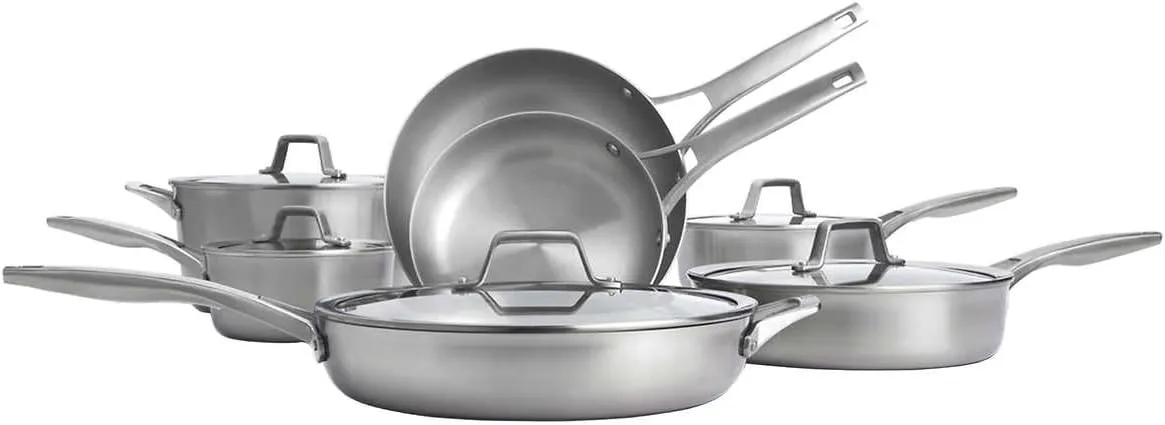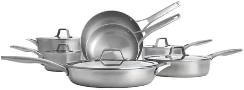 Кастрюли и сковороды Calphalon Premier из нержавеющей стали предлагают точную кулинарную производительность с вечным, элегантным дизайном, который вдохновляет любого шеф-повара. Их трехслойная металлическая конструкция с тяжелым алюминиевым сердечником обеспечивает равномерное распределение тепла для однородного подрумянивания, обжаривания и тушения. Элегантная отделка из нержавеющей стали безопасна для мытья в посудомоечной машине для легкой очистки.