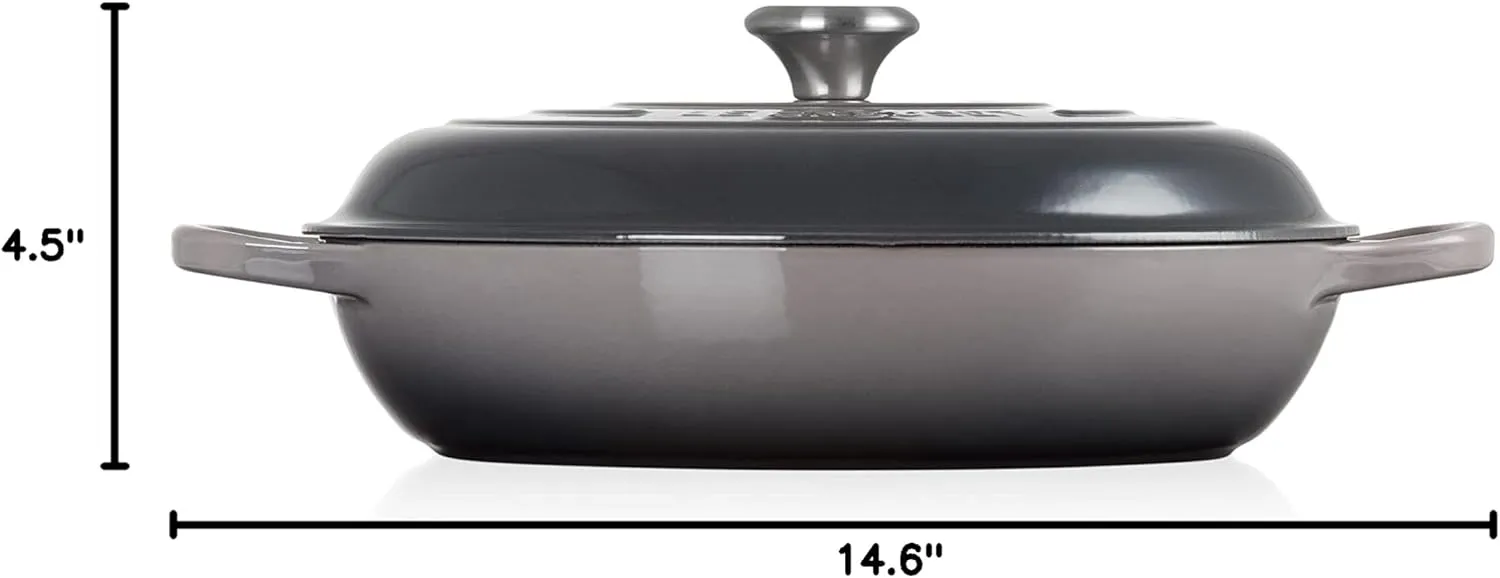 Гладкая чугунная кастрюля Le Creuset уникально спроектирована для равномерного нагрева, превращая жесткие куски мяса и сытные овощи в нежные, ароматные блюда. Широкое дно позволяет ингредиентам размещаться в один ряд для обжаривания без скученности; после добавления жидкости куполообразная крышка циркулирует пар, запечатывая влагу и аромат. Универсальная форма кастрюли также делает ее идеальной для мелкого жарения, варки на пару, рагу, запеканок и подачи на стол. Уникально изготовленная французскими мастерами из материалов самого высокого качества с 1925 года, эмалированная чугунная посуда Le Creuset любима за свой усовершенствованный дизайн и исключительное удержание тепла, что обеспечивает превосходные результаты от плиты до духовки и на стол. Спроектированная для долговечности на поколения, легкая в чистке фарфоровая эмаль не требует предварительной обработки, минимизирует прилипание и безопасна для посудомоечной машины.