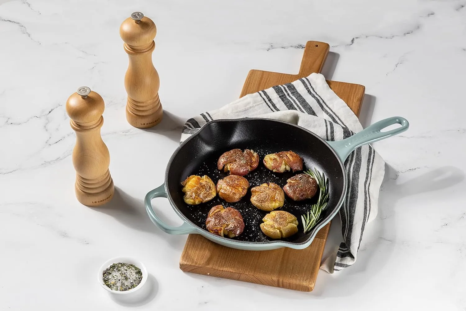 Эмалированная чугунная сковорода Signature - это универсальный кухонный инструмент для жарки, обжаривания, быстрой жарки и не только. Внутренняя поверхность покрыта черной сатиновой эмалью, что исключает необходимость в традиционном приправлении и обслуживании необработанного чугуна. Специально разработанная для приготовления при более высоких температурах, эмаль со временем образует естественную патину, что делает ее практически антипригарной и легкой в чистке.