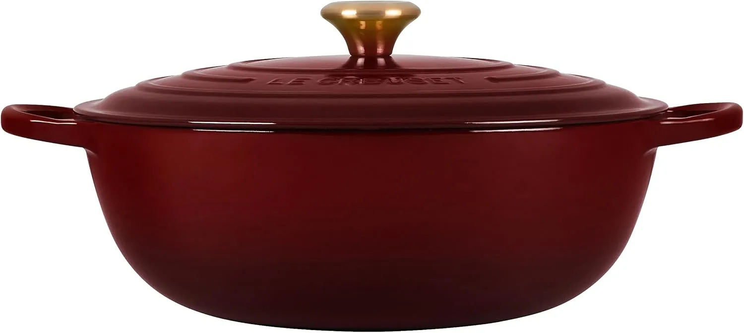 Широкий размер и глубина печи Signature Chef делают ее идеальной для супов, пасты, тушения и даже выпечки. Наклонные стены улучшают эффективность перемешивания, даже с закрытой крышкой, а глубина позволяет достаточно томить. Эмалированный чугун обеспечивает равномерное распределение и удержание тепла, запечатывая ароматы, в то время как большие петлевые ручки обеспечивают надежный захват для легкого переноса с плиты в духовку и на стол. Прочный и легкий в уходе, яркая эмалированная поверхность не требует предварительной подготовки и устойчива к прилипанию и пятнам.