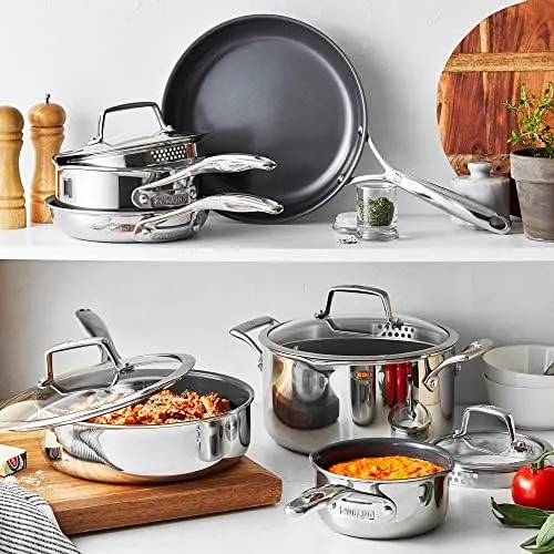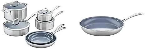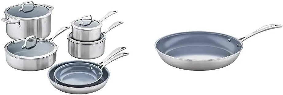 Этот комплексный набор из 10 предметов предназначен для укомплектования новой кухни всеми необходимыми сковородами или для обновления посуды на кухне, нуждающейся в замене.