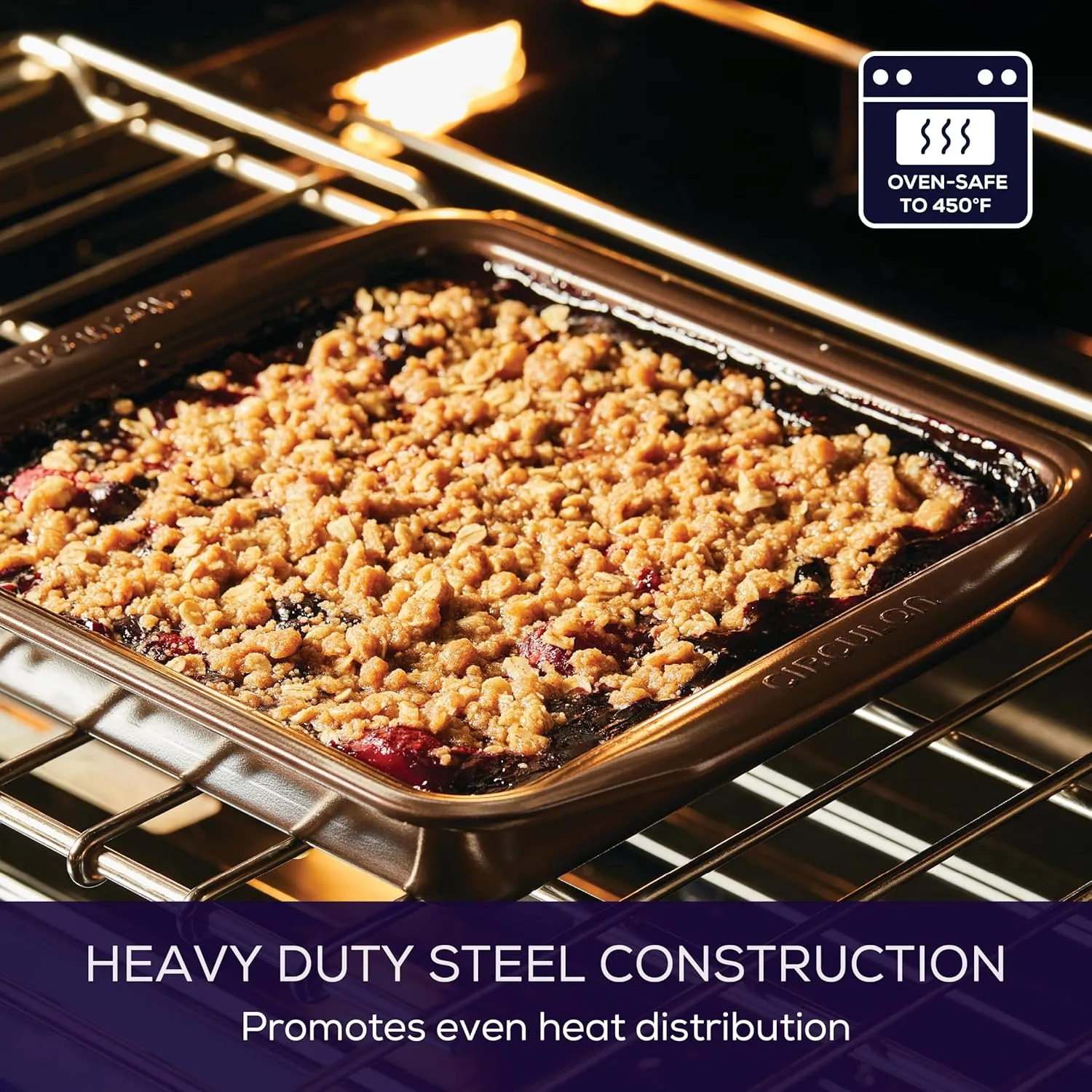 Полагайтесь на антипригарную посуду для выпечки, созданную для предоставления выпечки с использованием прочной и надежной антипригарной формы для торта Circulon размером 23 см. Превосходная антипригарная технология и решение, ориентированное на потребности, выделяют посуду Circulon среди других антипригарных форм. Технология начинается с приподнятых кругов на поверхности формы для торта, которые обеспечивают премиальное антипригарное покрытие. Дизайн с закатанными краями включает в себя характерный шоколадно-коричневый цвет как внутри, так и снаружи, а также широкие ручки для удобного хвата, даже в тяжелых духовках. Безопасно для духовки до 450°F, эта посуда приносит подход Circulon к экономии времени и энергии на кухне в домашних условиях. Форма для торта действительно оправдывает себя в полноценной жизни. Возьмите форму для торта, предназначенную для вкусной, надежной антипригарной выпечки каждый раз, с эффективной и стильной антипригарной формой для торта Circulon размером 23 см.