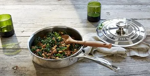 Задуманный дизайн сковороды для жарки предлагает обширную поверхность для обжаривания и жарки, а новая смесь нержавеющей стали устойчива к стойким пятнам и подгоранию со временем. Соответствующая крышка сохраняет влагу в пище во время приготовления.