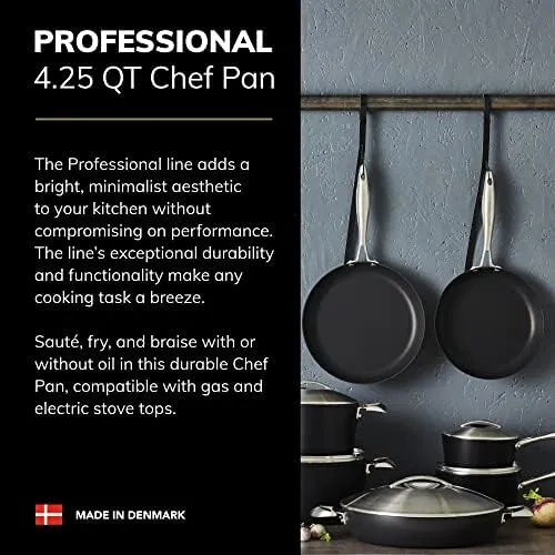 БЕЗОБЛАЖНЫЙ БЕЗ УПРЕКОВ - Забудьте все, что вы думаете, что знаете о посуде с антипригарным покрытием. Сковорода Scanpan Professional Chef Pan с крышкой жарит, обжаривает и томит как профессиональная посуда - все это на революционной антипригарной поверхности, которая требует мало или совсем не требует масла.