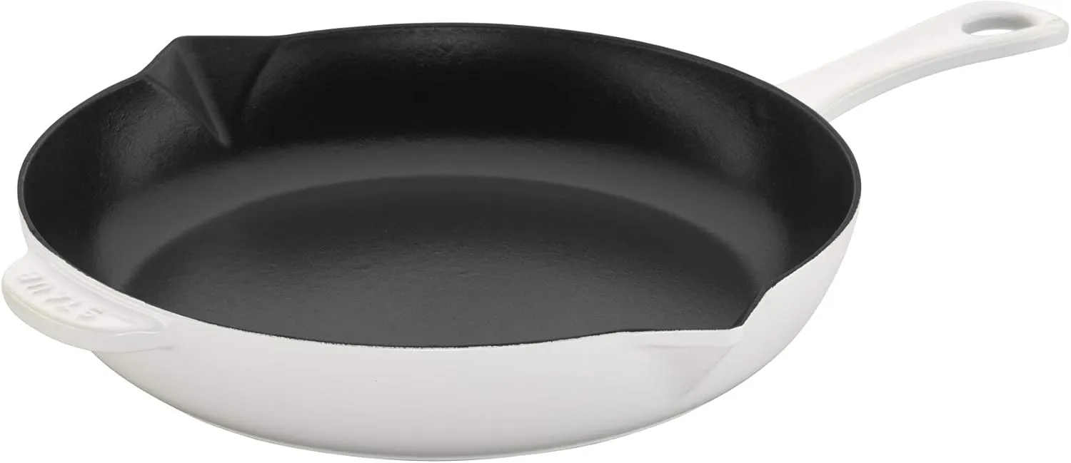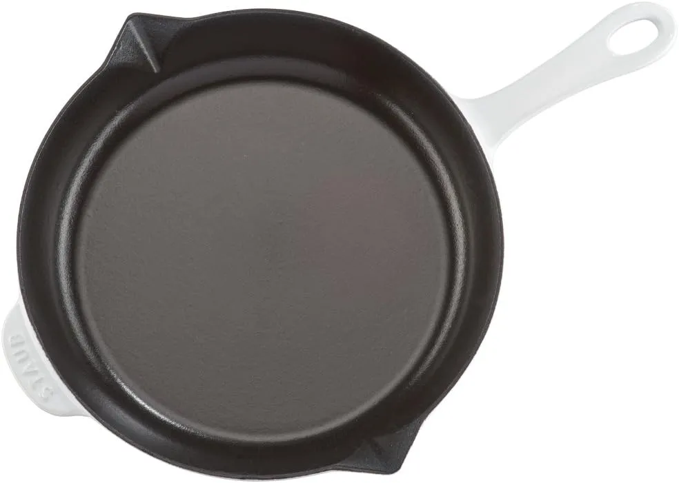 Сковороды от Staub изготавливаются из проверенного материала чугуна, который дополнительно покрывается эмалью. Поверхность прочная и легко чистится, как раз подходит для частого использования на кухне. Благодаря эффективному аккумулированию тепла обжаривание работает так же хорошо, как и медленное, стабильное приготовление. Прежде всего, равномерное выделение тепла обеспечивает бережное и здоровое приготовление пищи. Таким образом, ароматы и питательные вещества сохраняются особенно хорошо. Сковорода имеет диаметр 26 см. Она имеет чугунную ручку, поэтому сковороду можно использовать не только на любой плите, но и в духовке. Два носика используются для отвода лишнего жира или для расстановки соусов. Чугун имеет матовую черную эмаль, которая обладает вкусовыми свойствами. Они даже усиливаются при частом использовании. Поверхность сковороды-гриль прочная и чрезвычайно проста в уходе. Благодаря хорошему удержанию тепла чугуном пища остается теплой в течение длительного времени, так что вы можете легко подать ее в со вкусом оформленной сковороде на обеденном столе. Сковорода подходит для использования на всех типах плит, в том числе и на индукционных. Вы также можете без лишних слов поставить противень в духовку, например, аккуратно продолжить приготовление ранее обжаренного мяса. С помощью сковороды от Staub вы можете создавать вкусные блюда для жарки и вкусные соусы, которыми можно побаловать своих гостей.