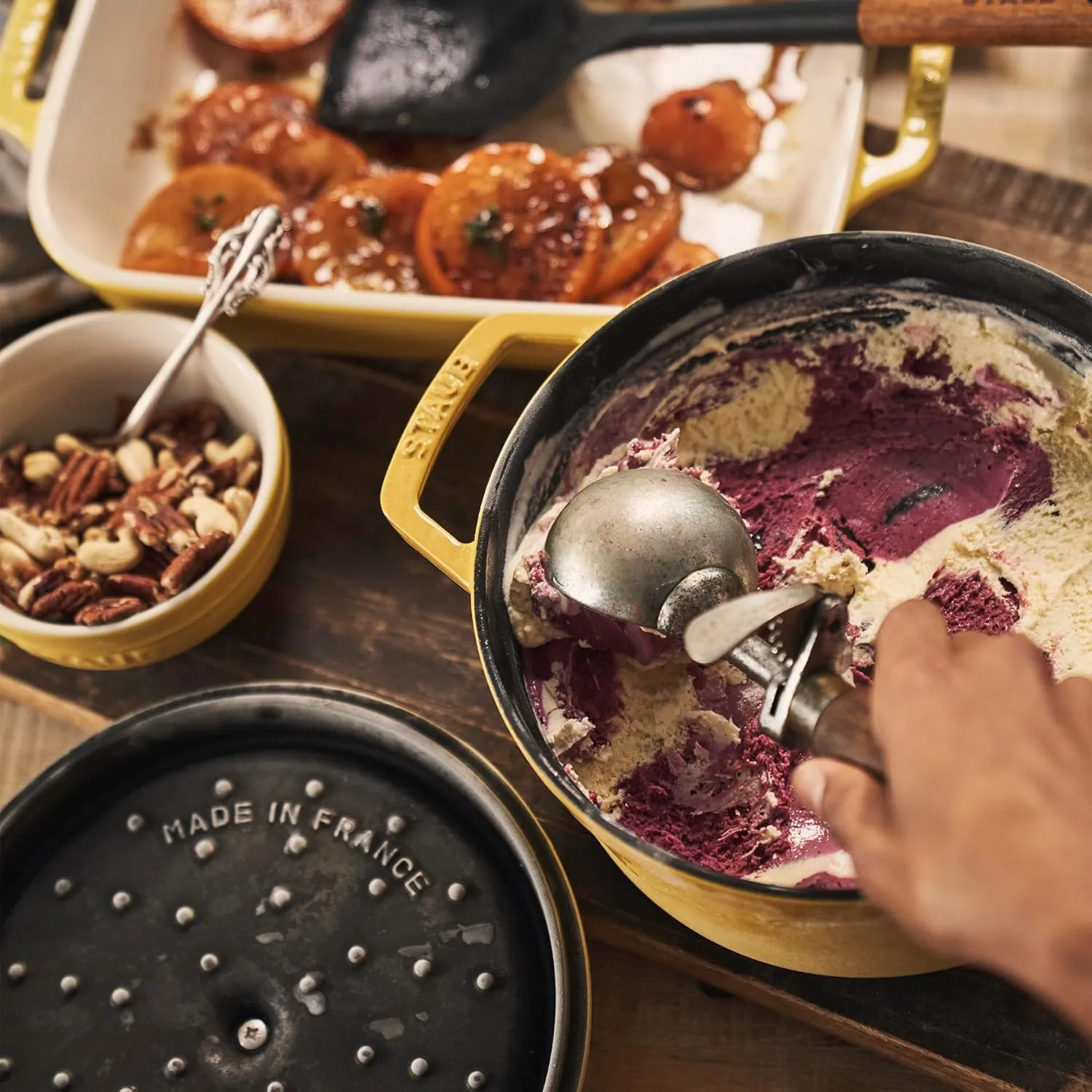 Кокотница Staub непревзойденна для медленного приготовления мяса и овощей до нежной степени готовности, а также для приготовления на медленном огне сытных рагу и супов. Чугун обладает исключительными теплоаккумулирующими качествами, поэтому кастрюля нагревается равномерно. Инновационная крышка с мелкими шипами на внутренней стороне постоянно возвращает конденсированную жидкость обратно на еду, обеспечивая влажные и насыщенные результаты. Специальная матовая черная эмаль Innenraum и самобастирующаяся шипастая крышка Staub гарантируют идеальное подрумянивание и тушение для улучшения вкуса. Благодаря exquisite эмалевому покрытию, каждое изделие прекрасно переходит от кухни к столу. От комфортной еды до шикарных ужинов, каждое блюдо становится особенным, когда подается в Staub. Чугунная посуда Staub с эмалевым покрытием - это выбор лучших шеф-поваров мира.